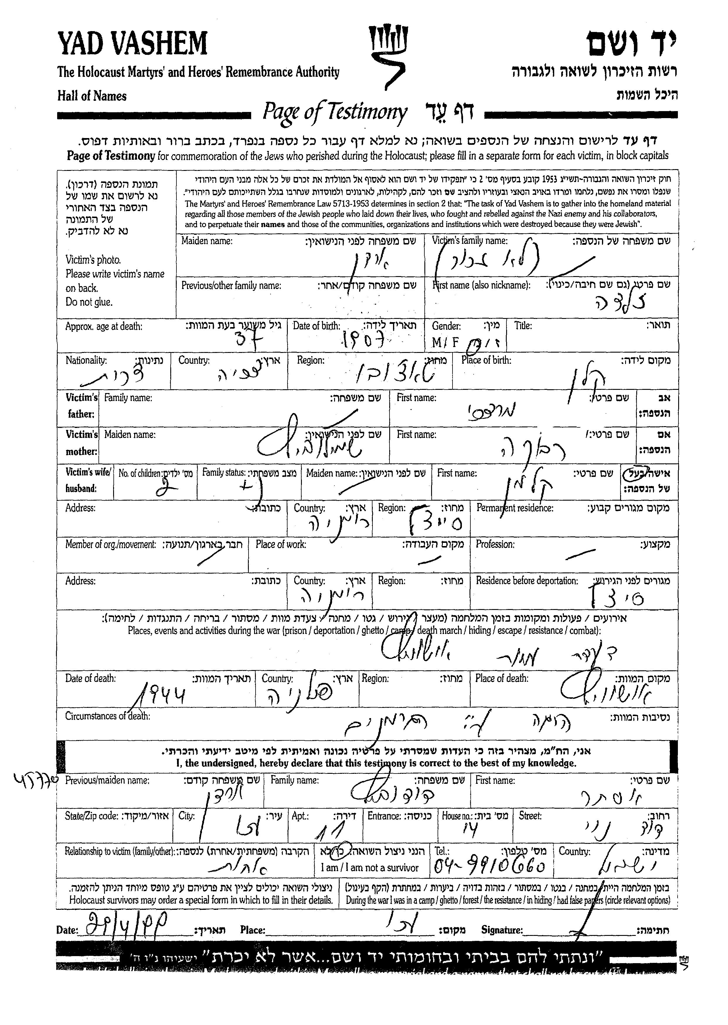 Zelda wurde in der Schoah ermordet. Todesort: Auschwitz, Polen im Jahr 1944.