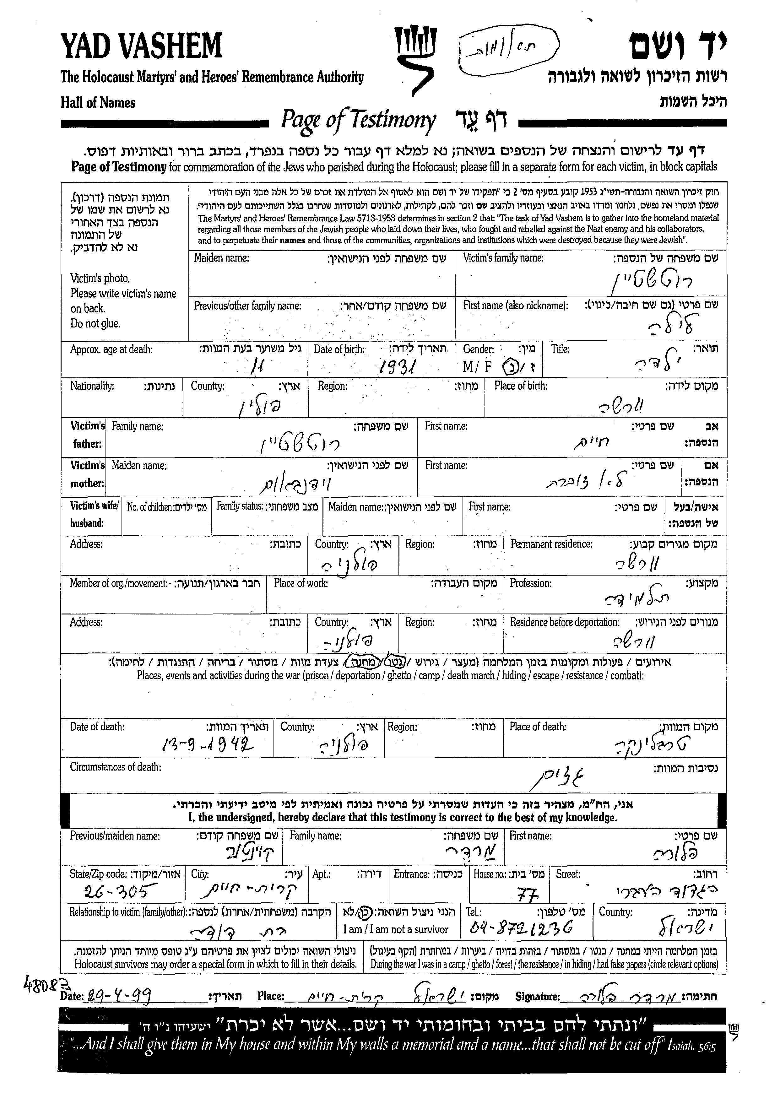 Lila wurde in der Schoah ermordet. Todesort: Treblinka, Polen im Jahr 13/09/1942.