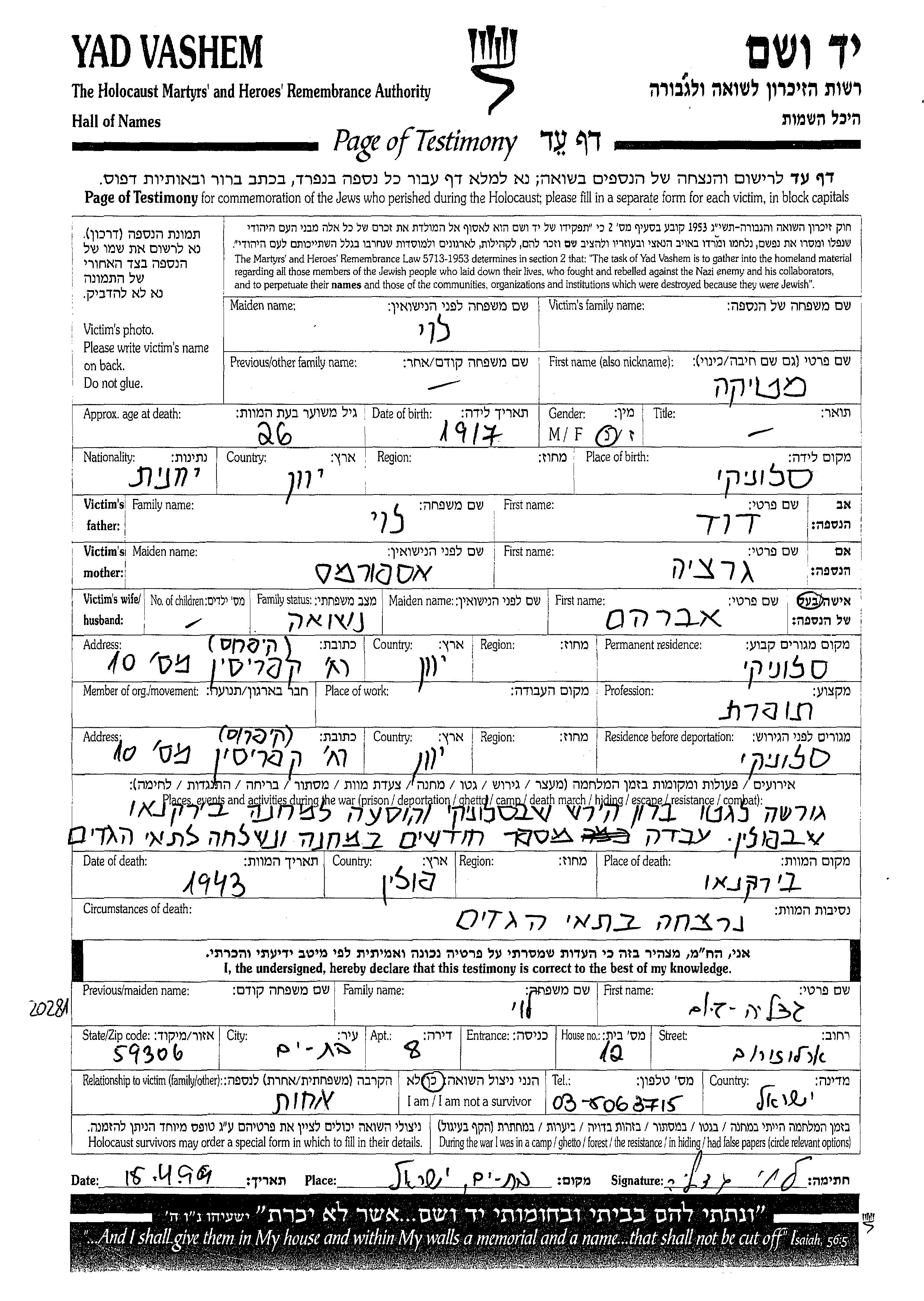 Matika wurde in der Schoah ermordet. Todesort: Birkenau, Polen im Jahr 1943.