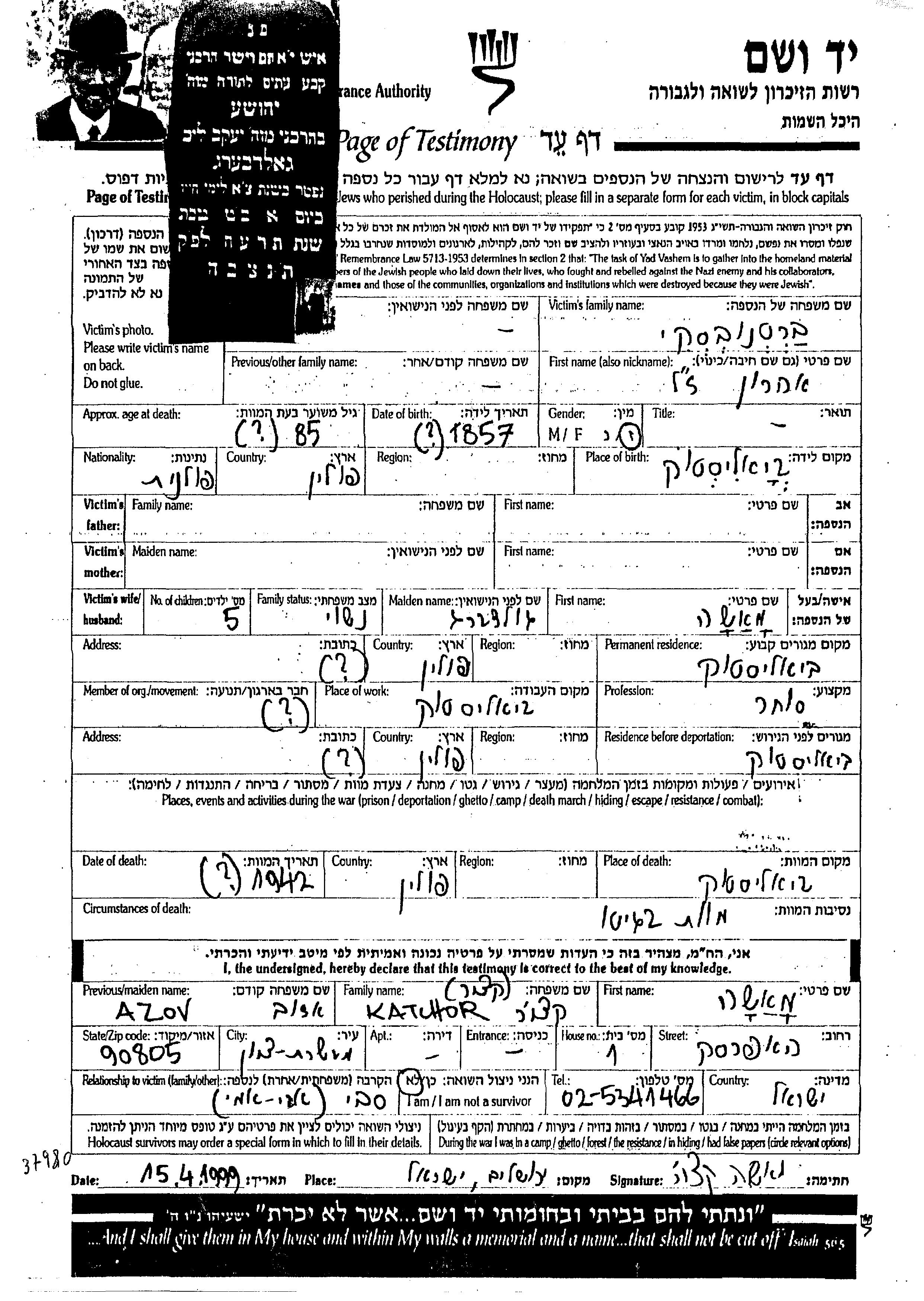 Aharon wurde in der Schoah ermordet. Todesort: Bialistok, Polen im Jahr 1942.