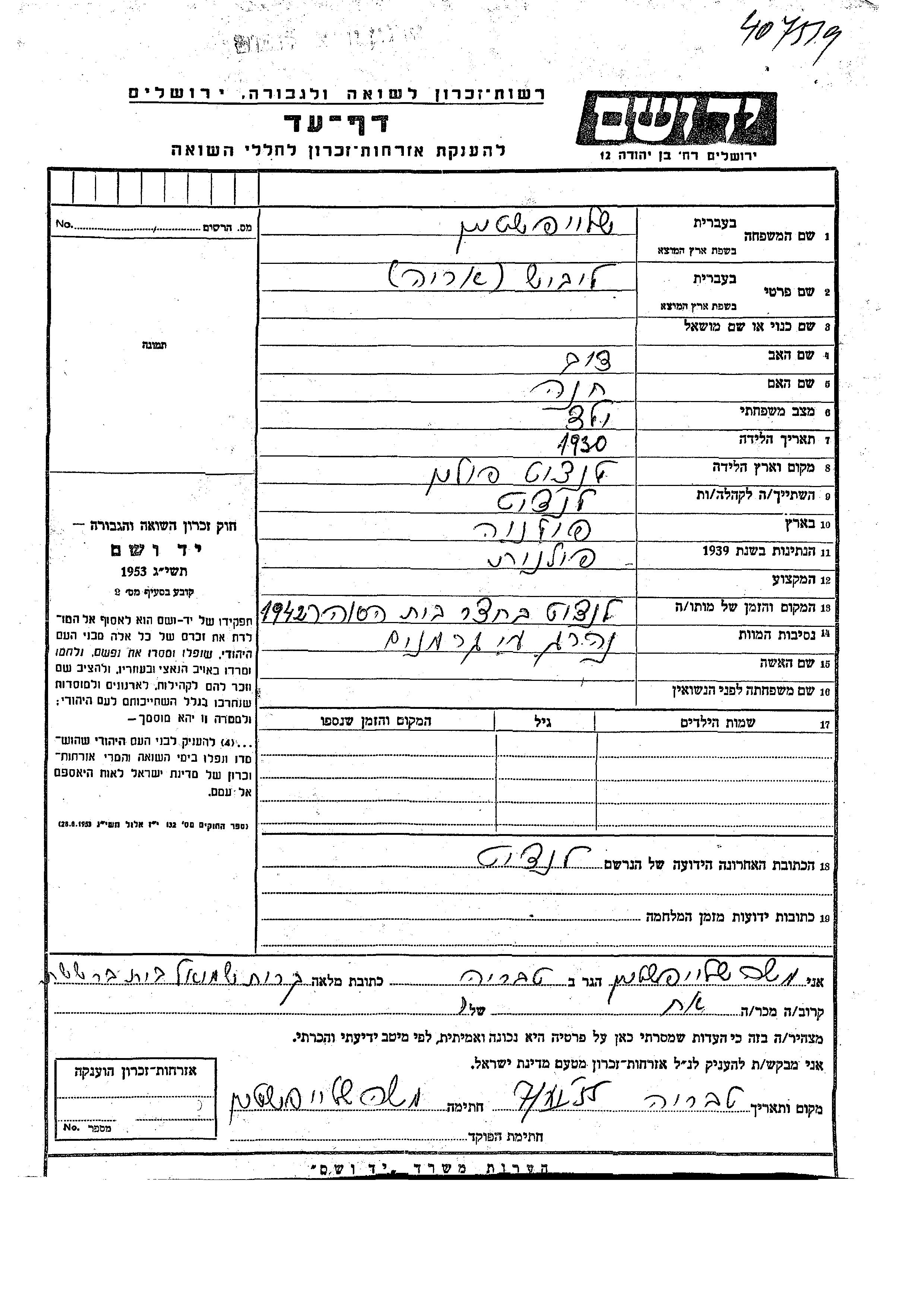 Leib Arie wurde in der Schoah ermordet. Todesort: unbekannt im Jahr 1942.