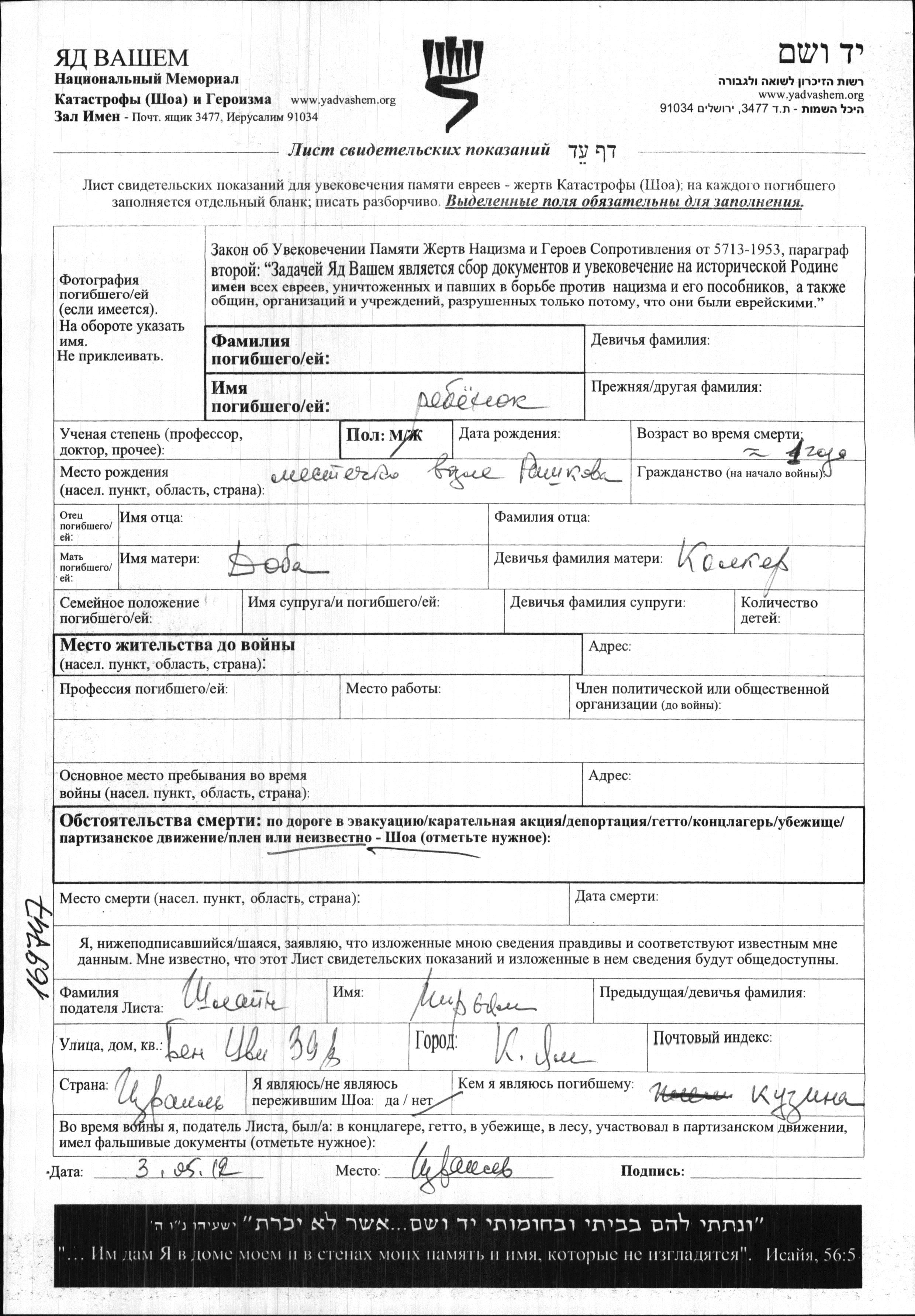 Vorname unbekannt Name unbekannt wurde in Rashkov, Rumänien geboren. Er war der Sohn von Doba, geb. Kolker. Er war Kind.