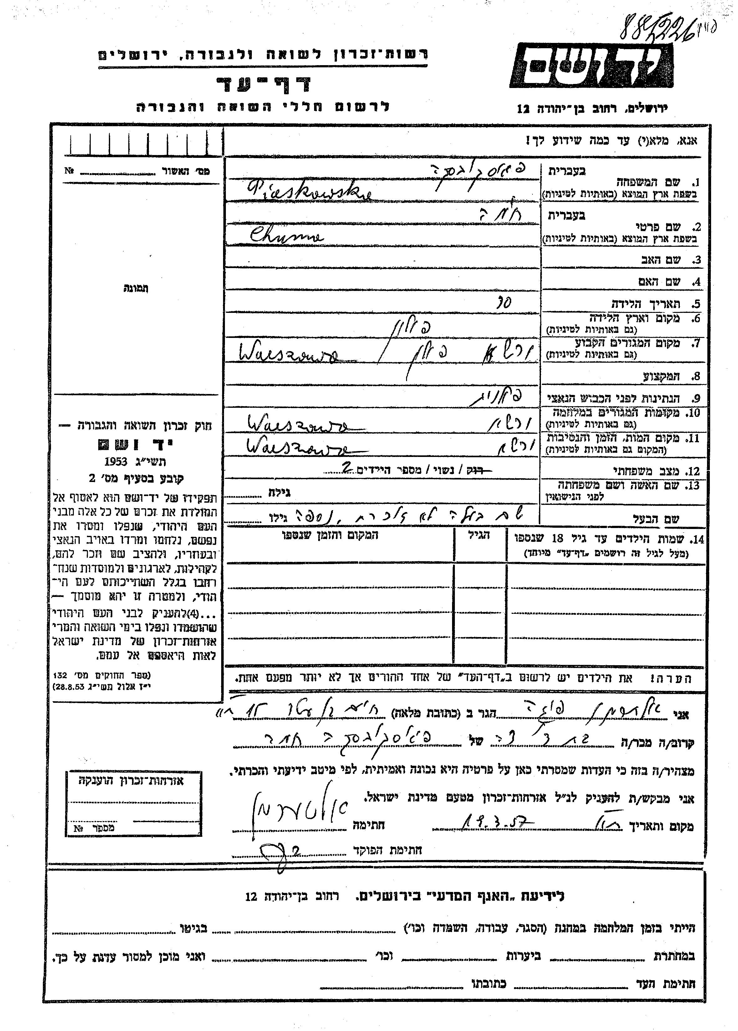 Chuwa wurde in der Schoah ermordet. Todesort: Warszawa, Polen.
