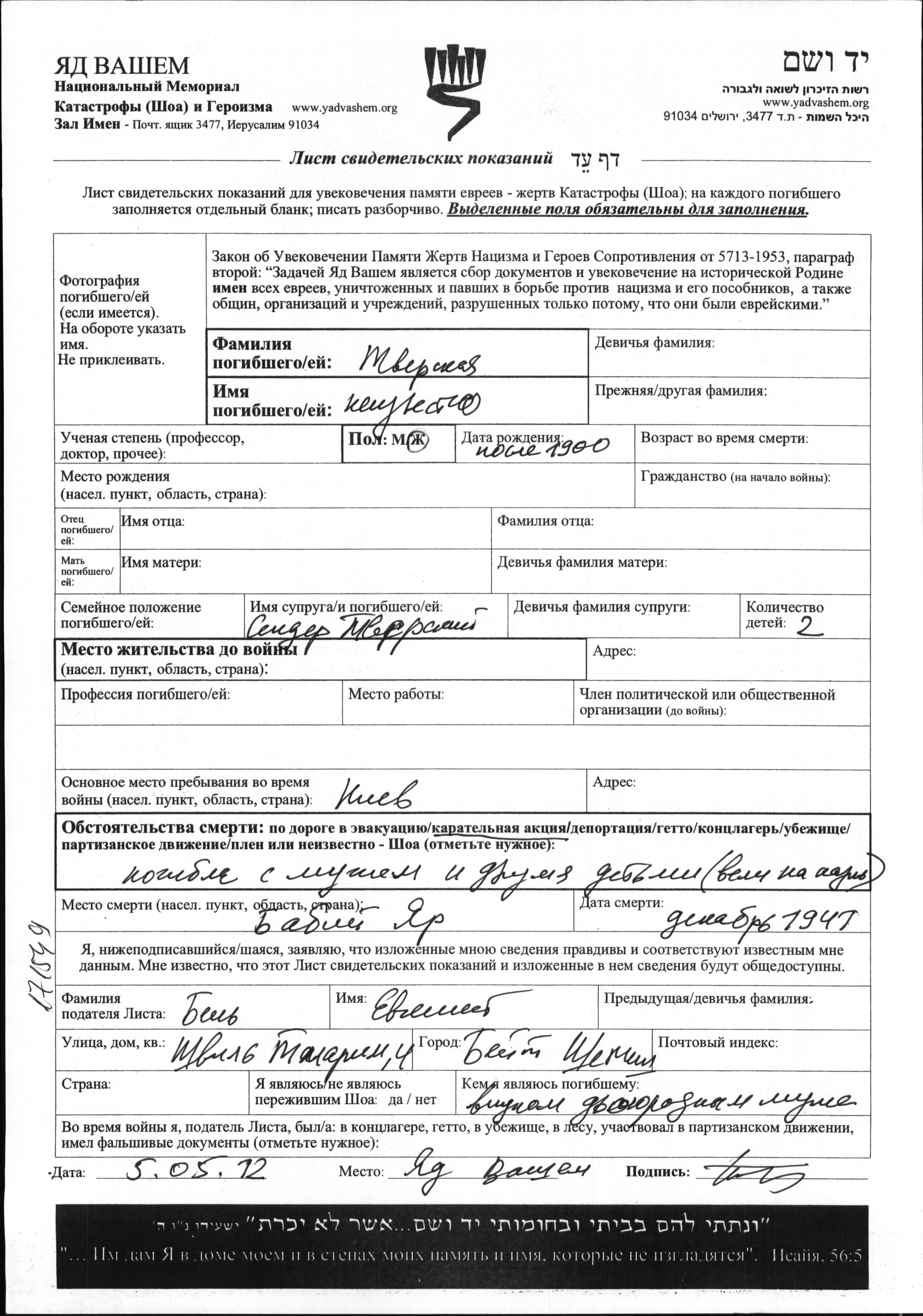 Sie wurde in der Schoah ermordet. Todesort: Babi Yar, Ukraine (UdSSR) im Jahr 12/1941.