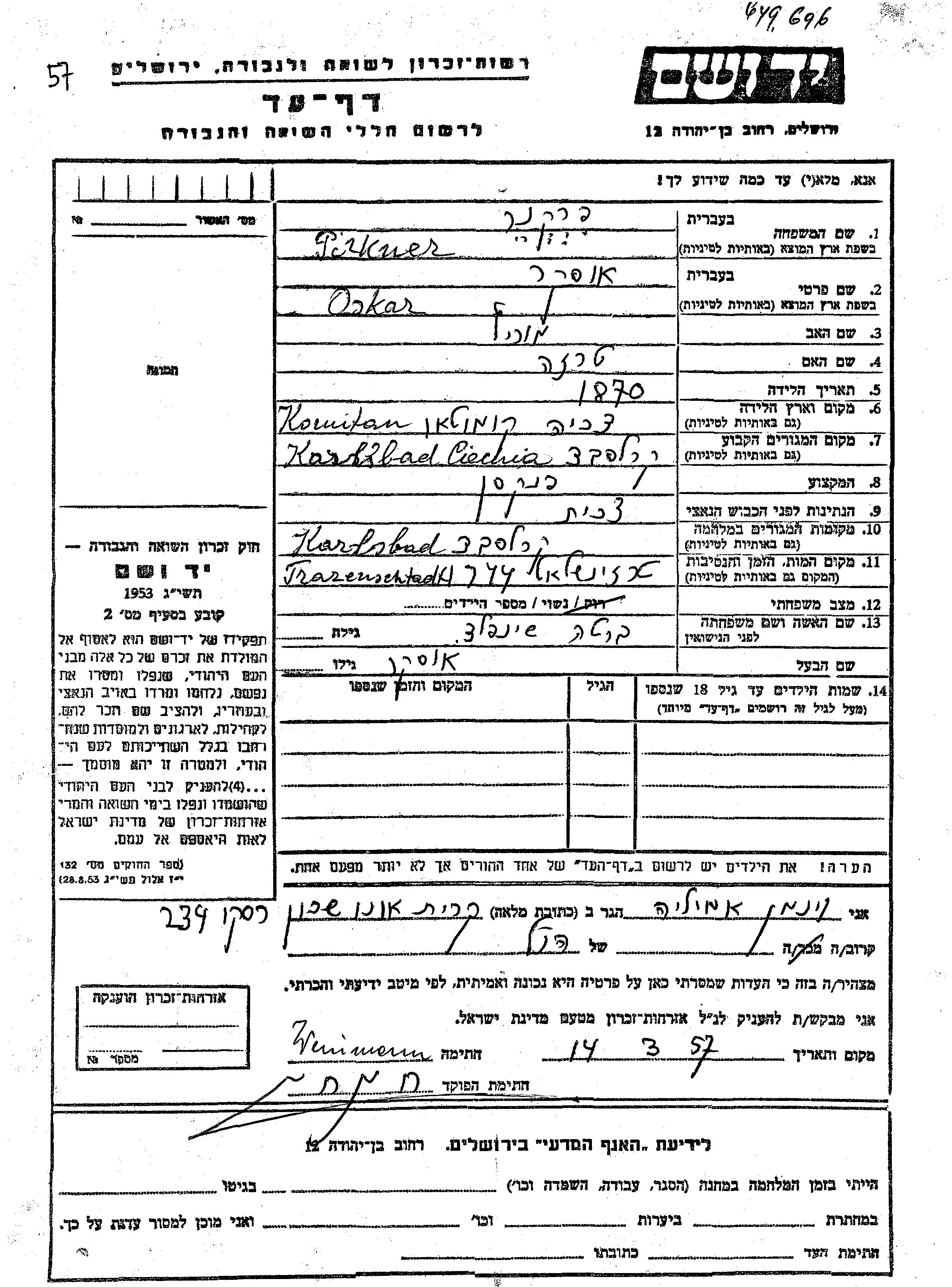 Oskar wurde in der Schoah ermordet. Todesort: Theresienstadt, Tschechoslowakei im Jahr 1944.
