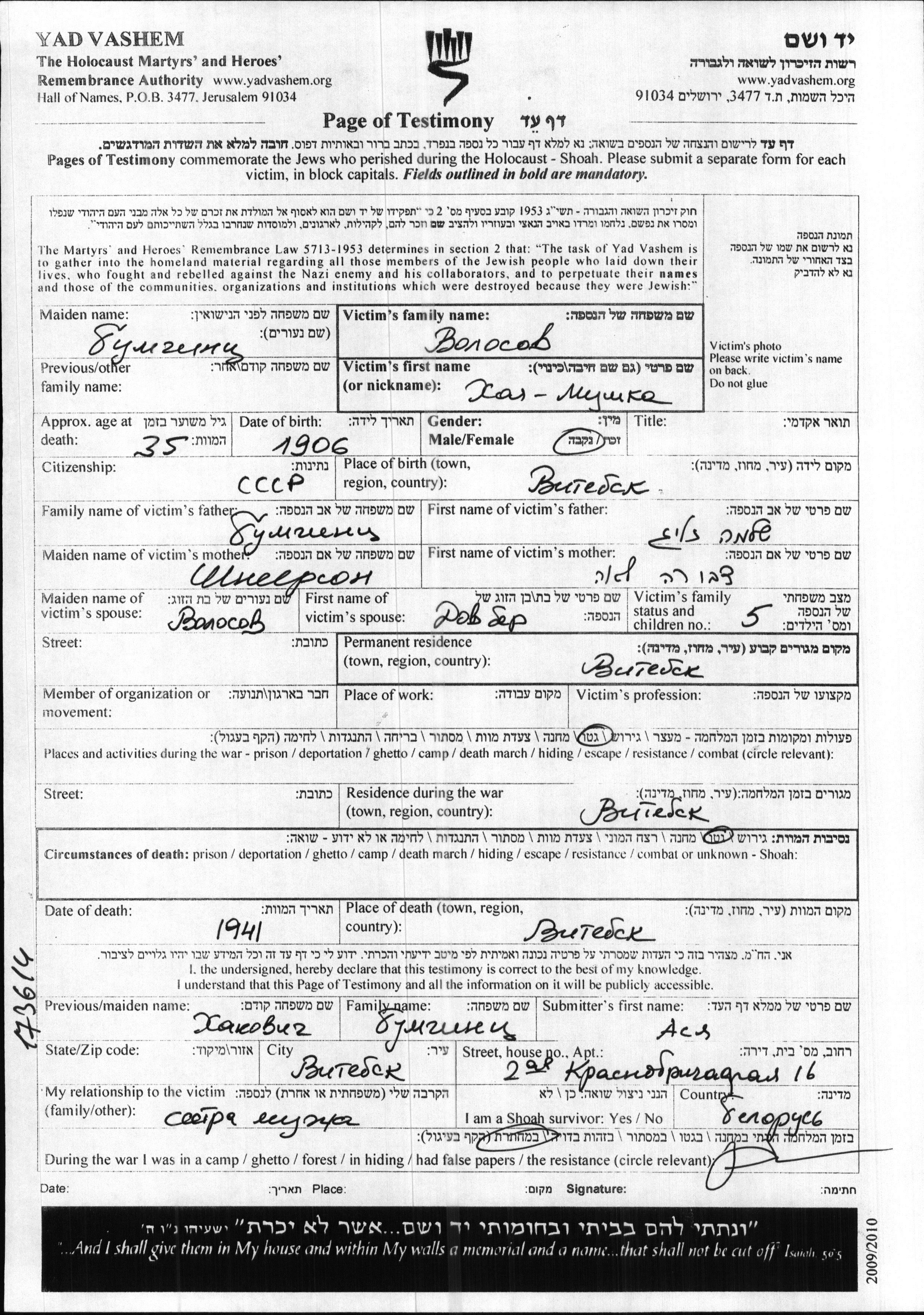 Khaya Mushka wurde in der Schoah ermordet. Todesort: Vitebsk, Weißrussland (UdSSR) im Jahr 1941.