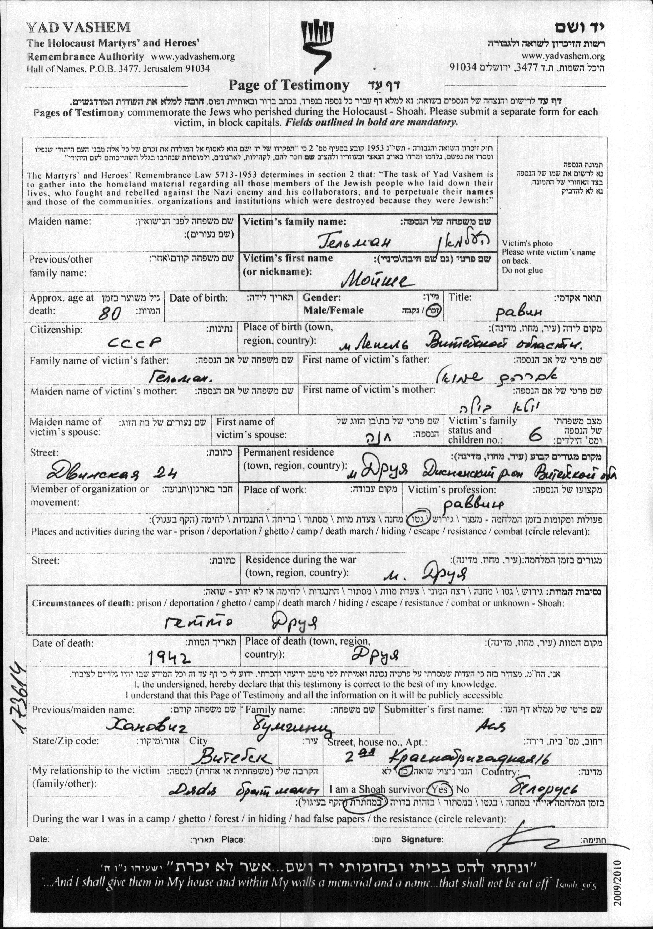 Moyshe wurde in der Schoah ermordet. Todesort: Druja, Polen im Jahr 1942.
