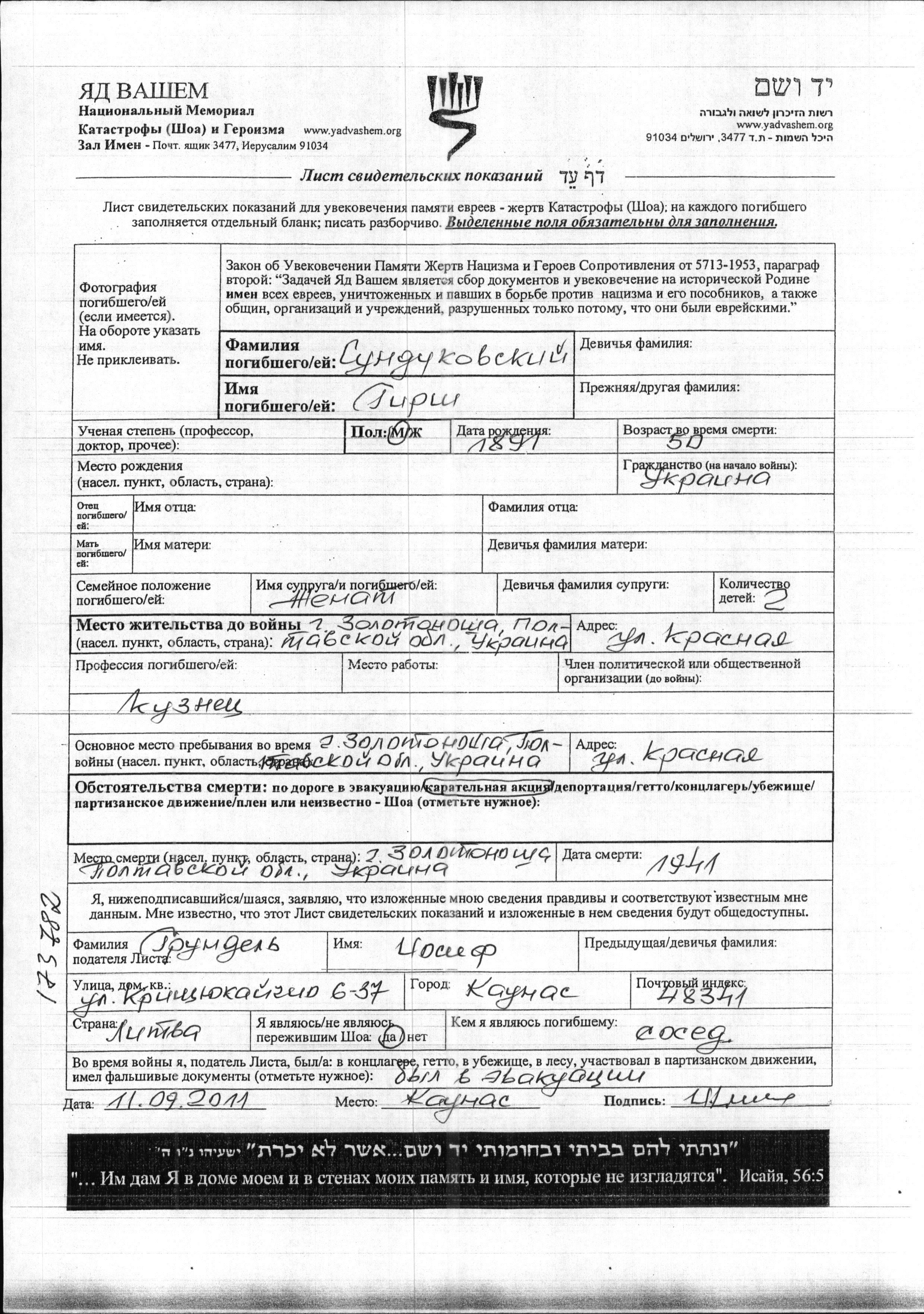 Aufenthaltsort während des Krieges/Schoah