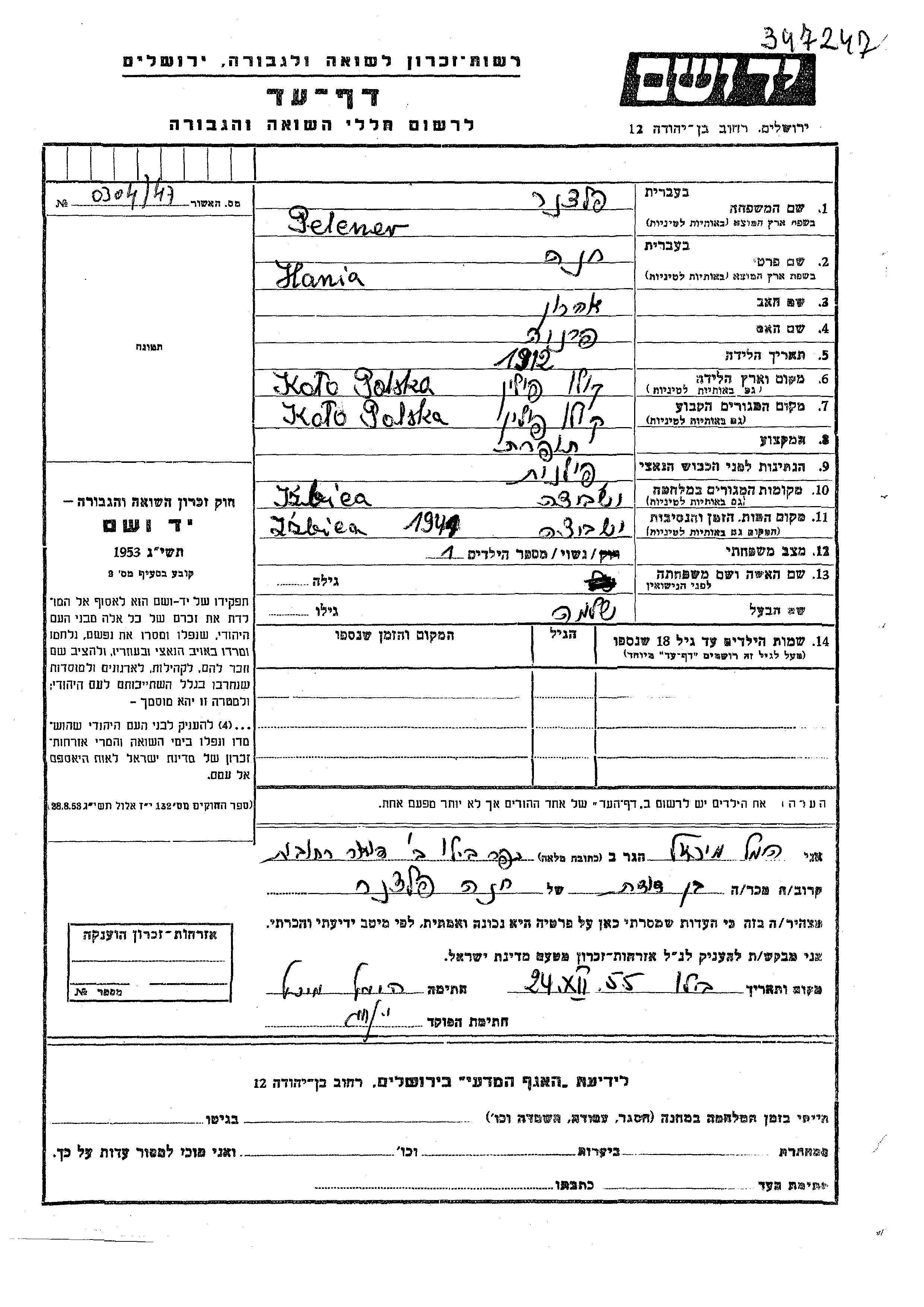 Hania wurde in der Schoah ermordet. Todesort: Izbica, Polen im Jahr 1941.