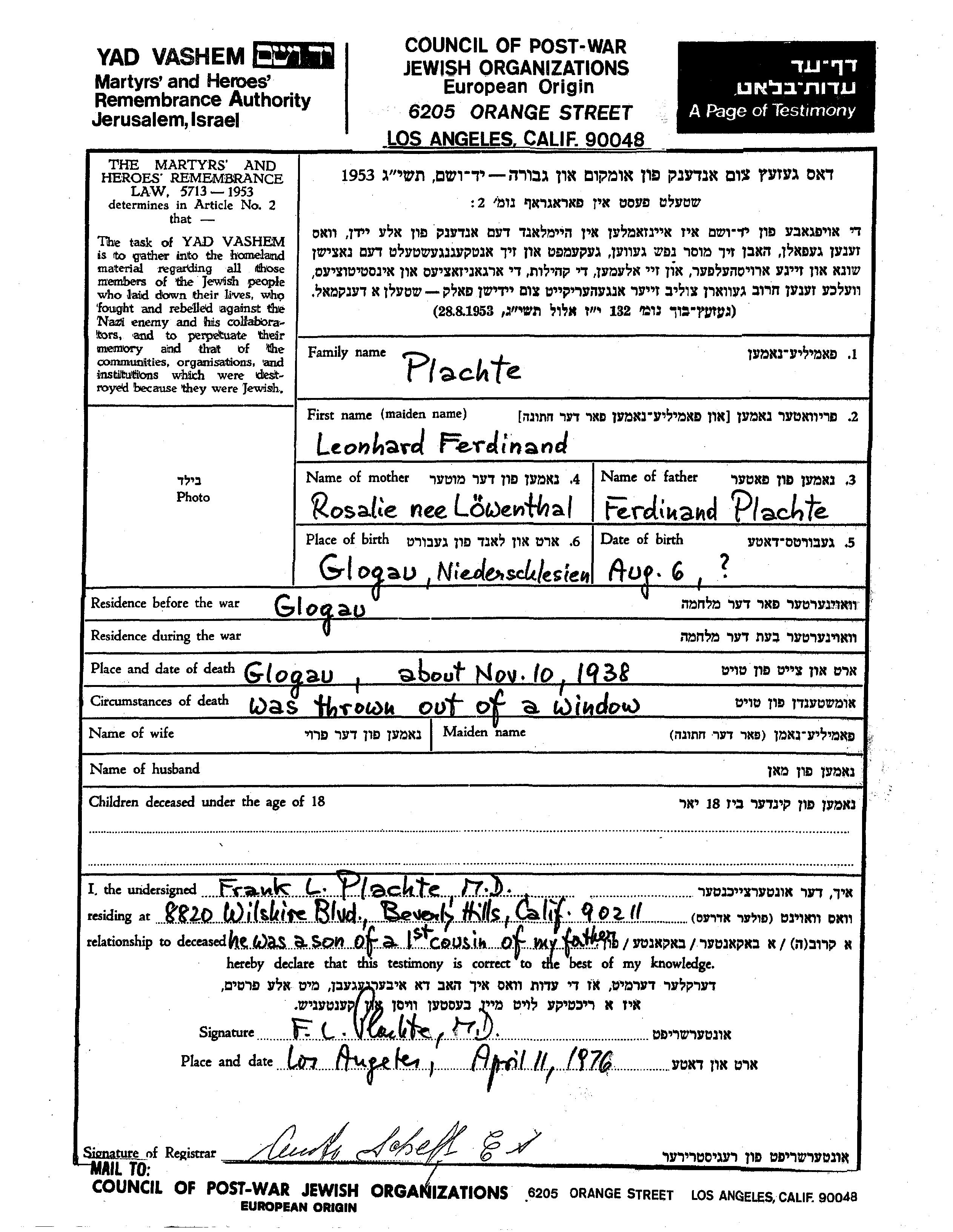 Suche nach einem Todesjahr im Zeitraum der Holocaust: 1933 bis 1945. Bitte wählen Sie 'Exakt' im Auswahlmenü, um nur nach einem einzelnen Jahr zu suchen, alternativ können Sie die flexibleren Optionen '+/- 2 Jahre' oder '+/- 5 Jahre' wählen.