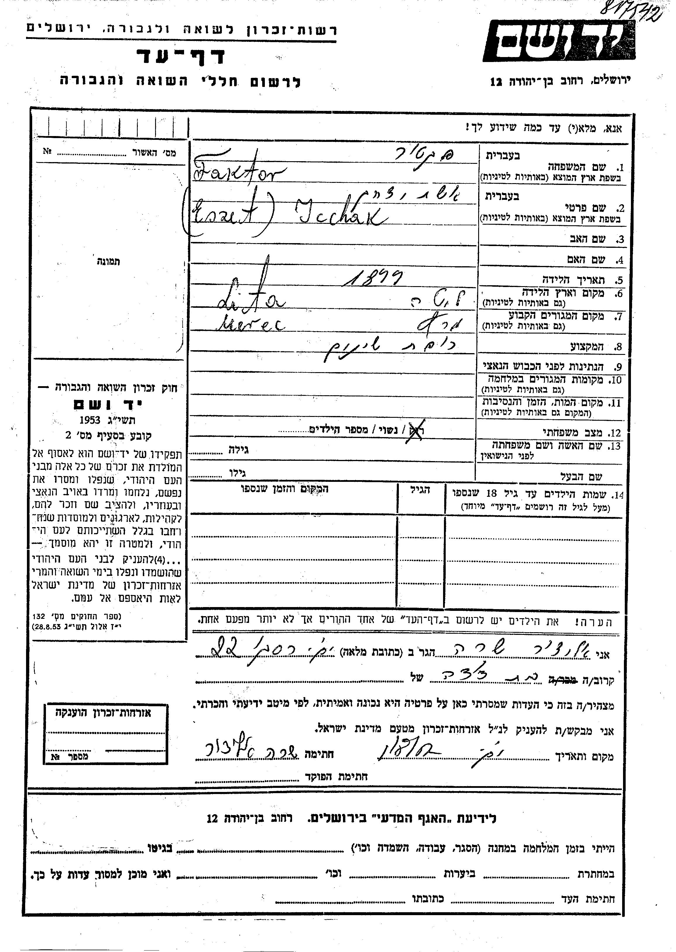 Vorname unbekannt Faktor wurde im Jahr 1899 in Litauen geboren. Sie war Zahnarzt/-ärztin und mit Yitzkhak Verheiratet. Vor dem Zweiten Weltkrieg lebte sie in Merech, Litauen.