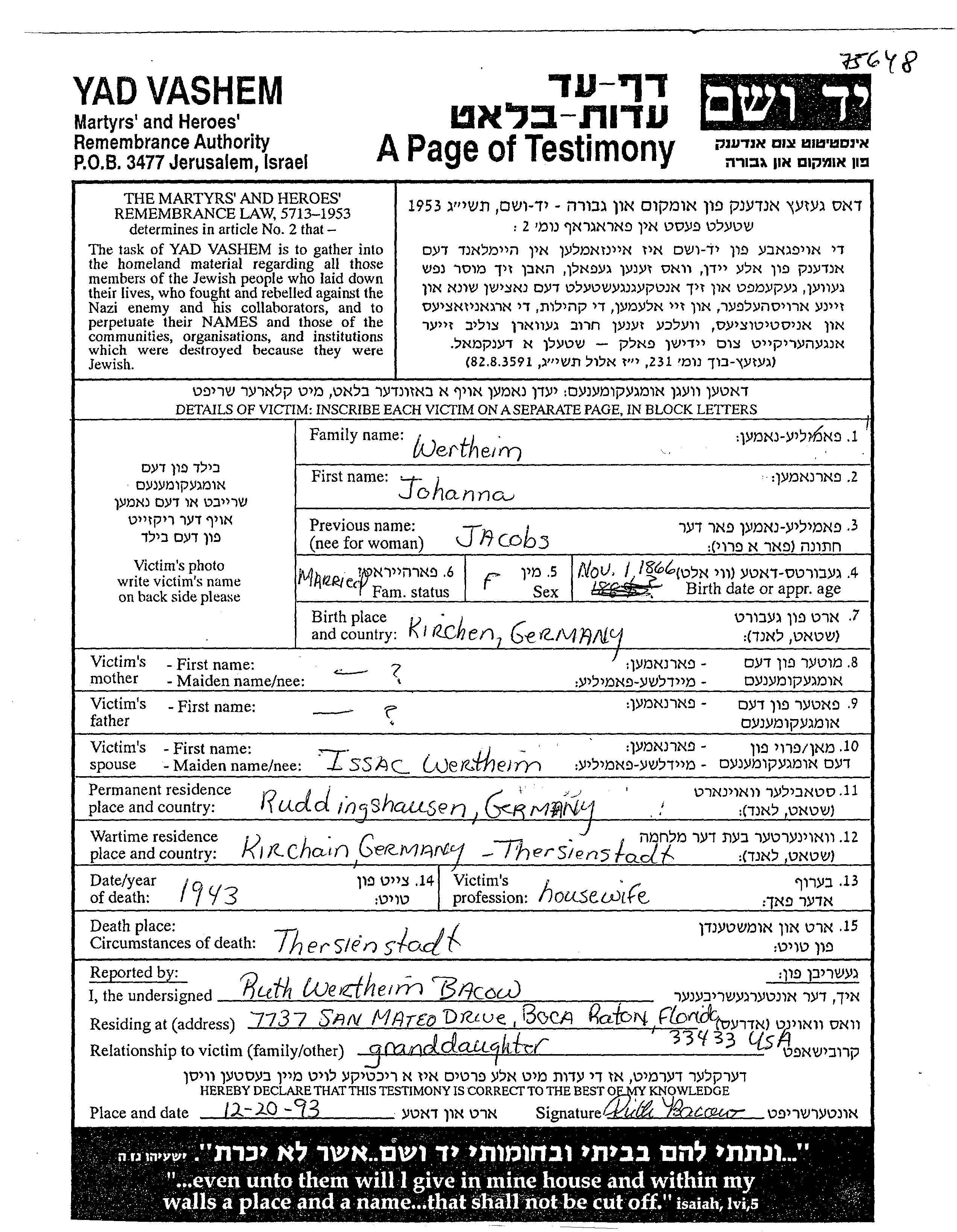 Suche nach einem Todesjahr im Zeitraum der Holocaust: 1933 bis 1945. Bitte wählen Sie 'Exakt' im Auswahlmenü, um nur nach einem einzelnen Jahr zu suchen, alternativ können Sie die flexibleren Optionen '+/- 2 Jahre' oder '+/- 5 Jahre' wählen.