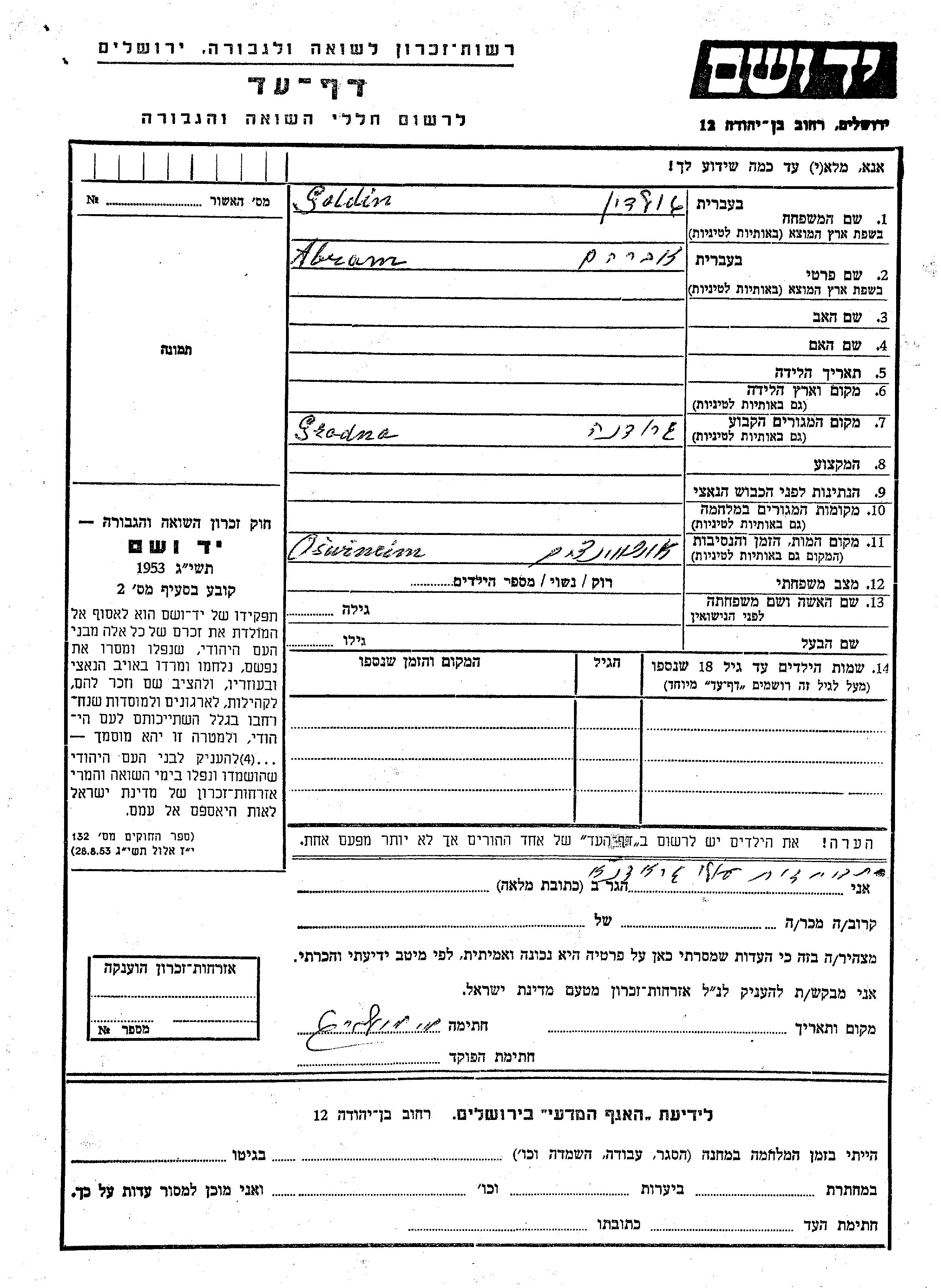 Abram Goldin. Vor dem Zweiten Weltkrieg lebte er in Grodno, Polen.
