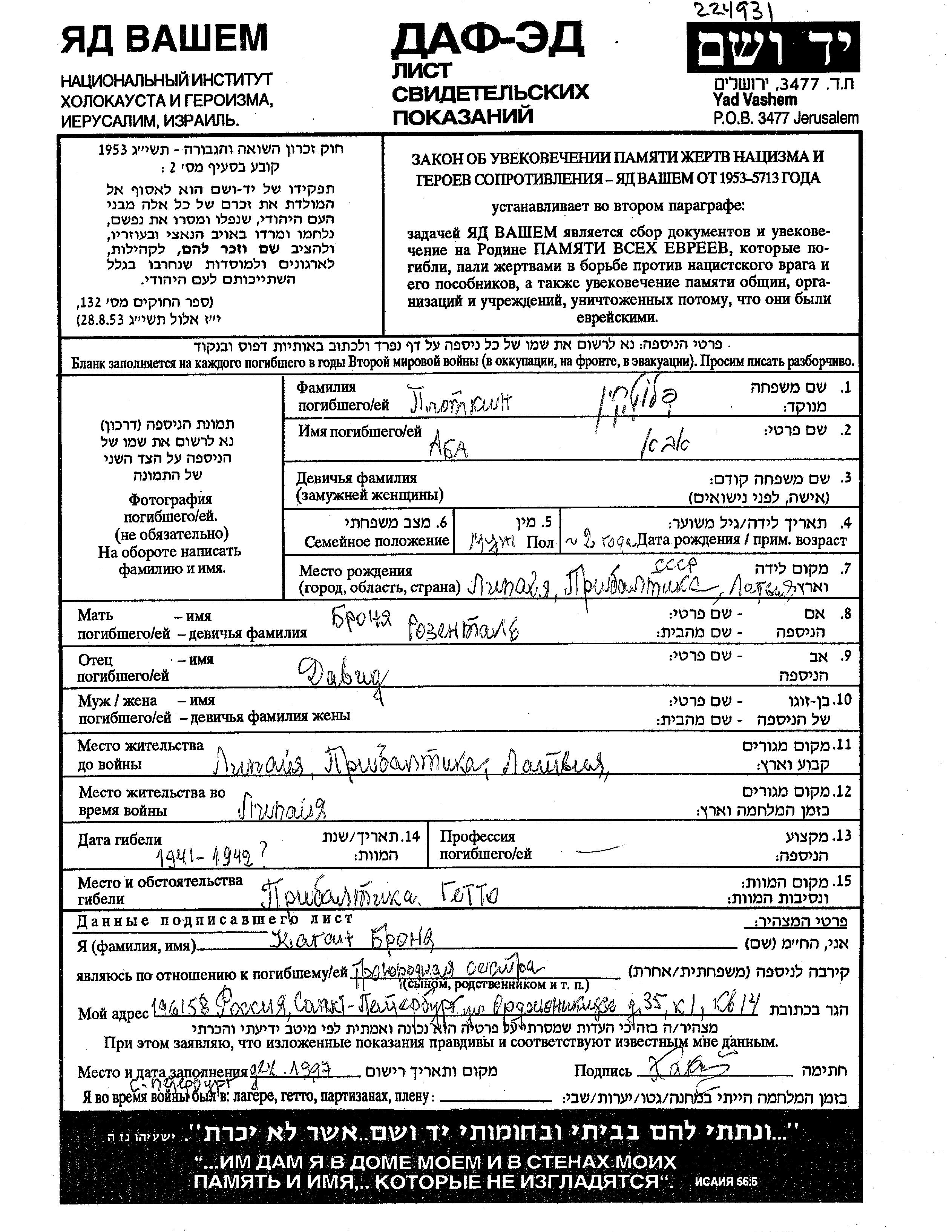 Aba wurde in der Schoah ermordet. Todesort: Liepaja, Lettland im Jahr 1941.