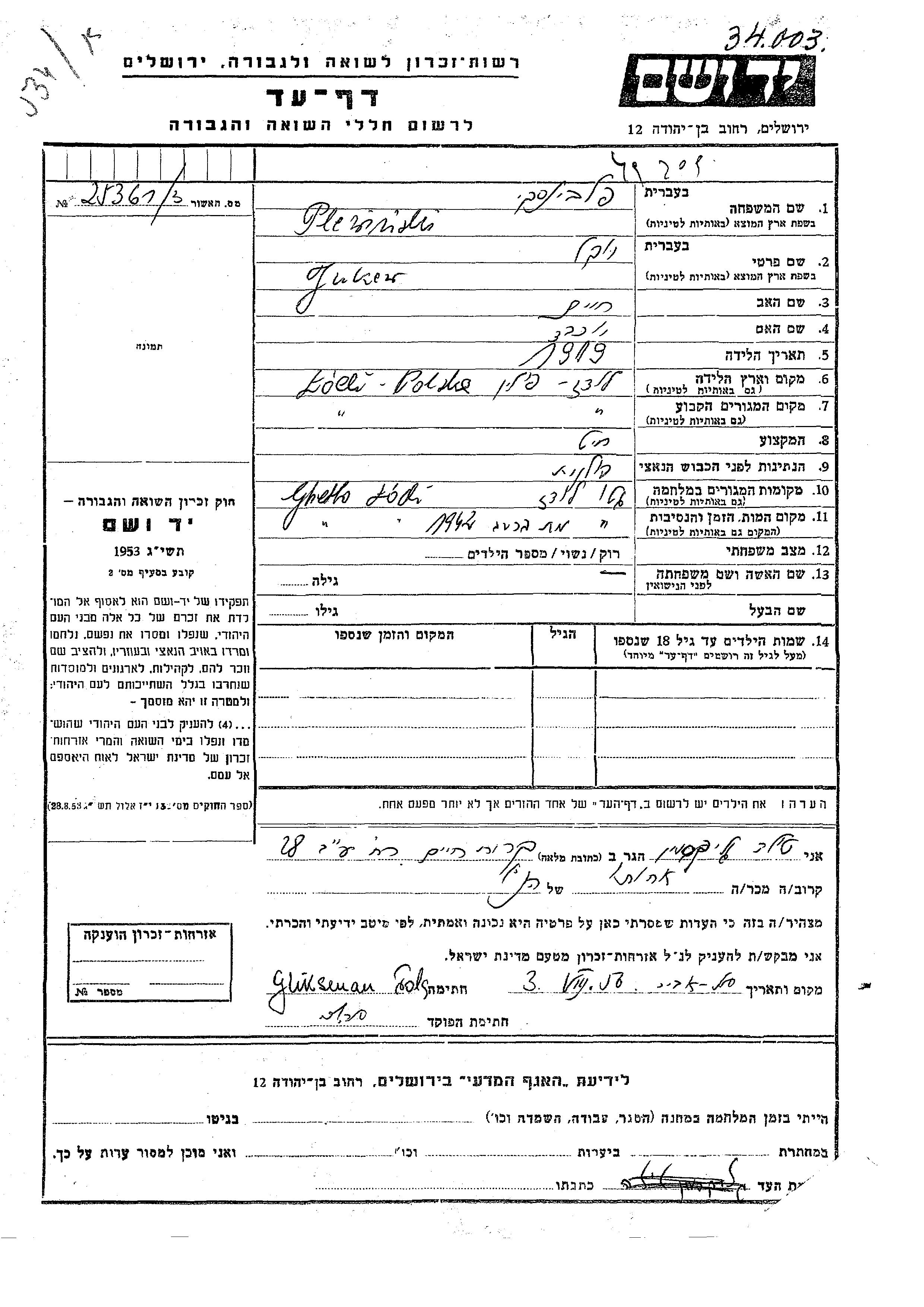 Yukel wurde in der Schoah ermordet. Todesort: Lodz, Polen im Jahr 1942.