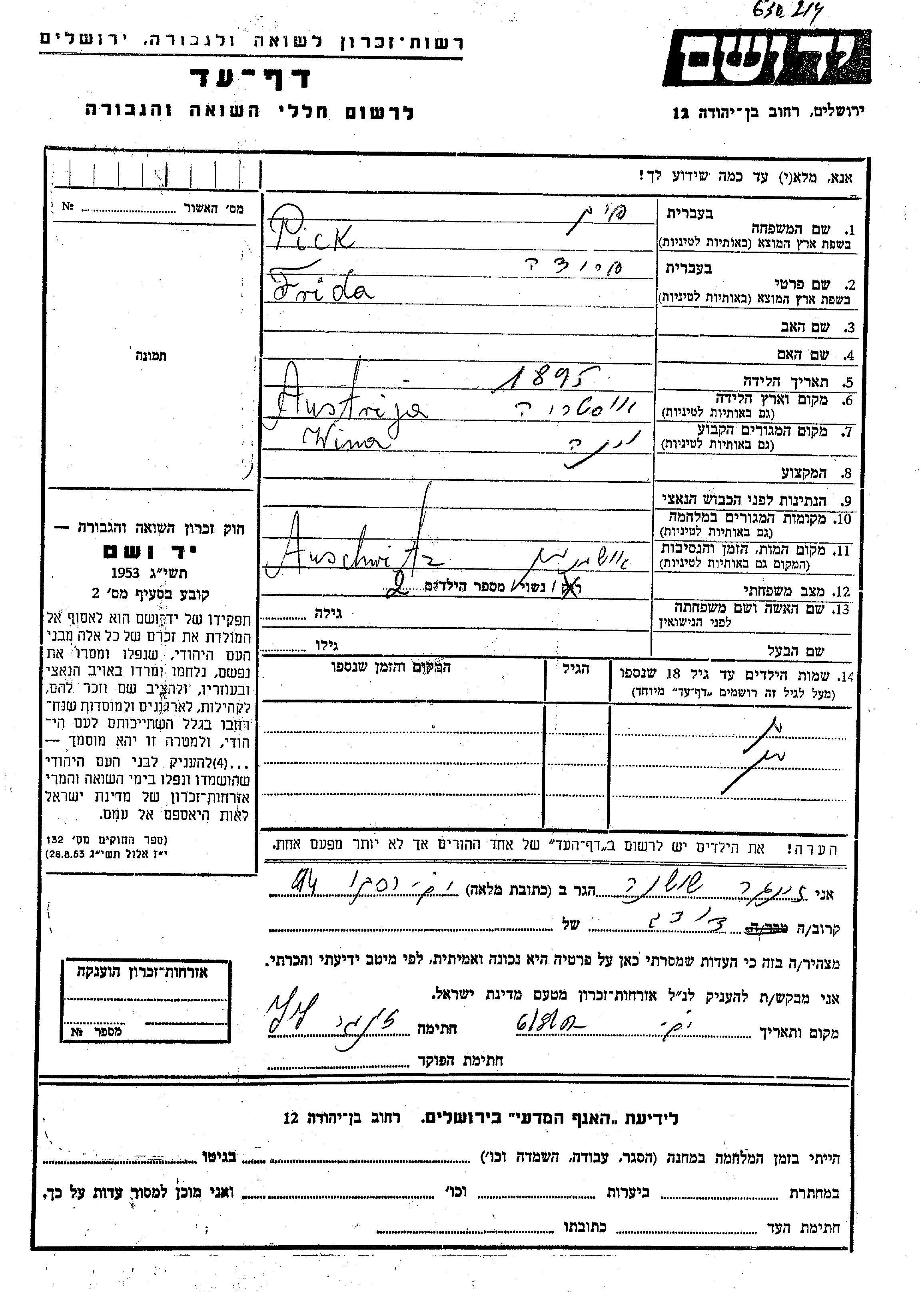 Frida wurde in der Schoah ermordet. Todesort: Auschwitz, Polen.