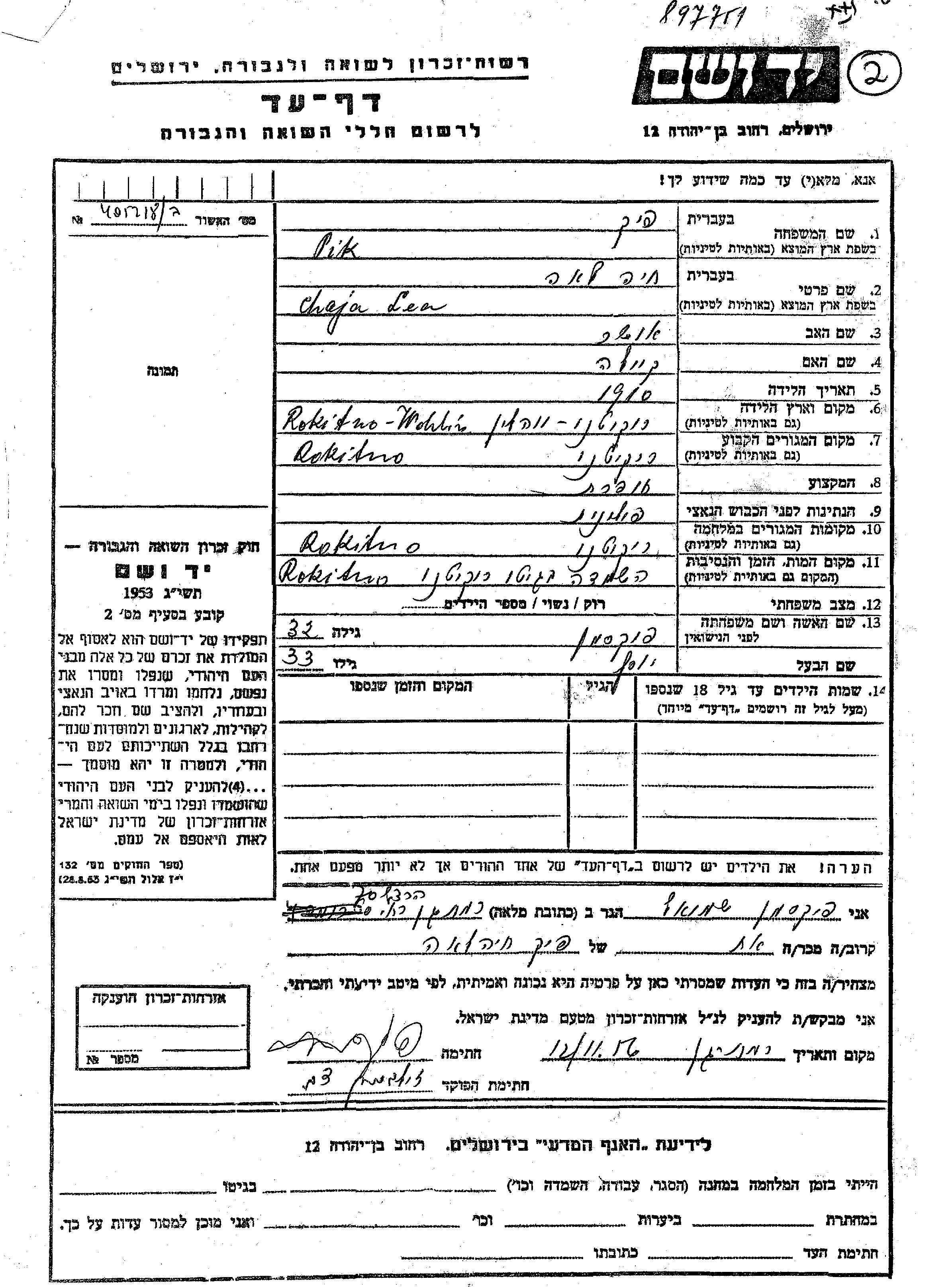 Chaja Lea wurde in der Schoah ermordet. Todesort: Rokitno, Polen.