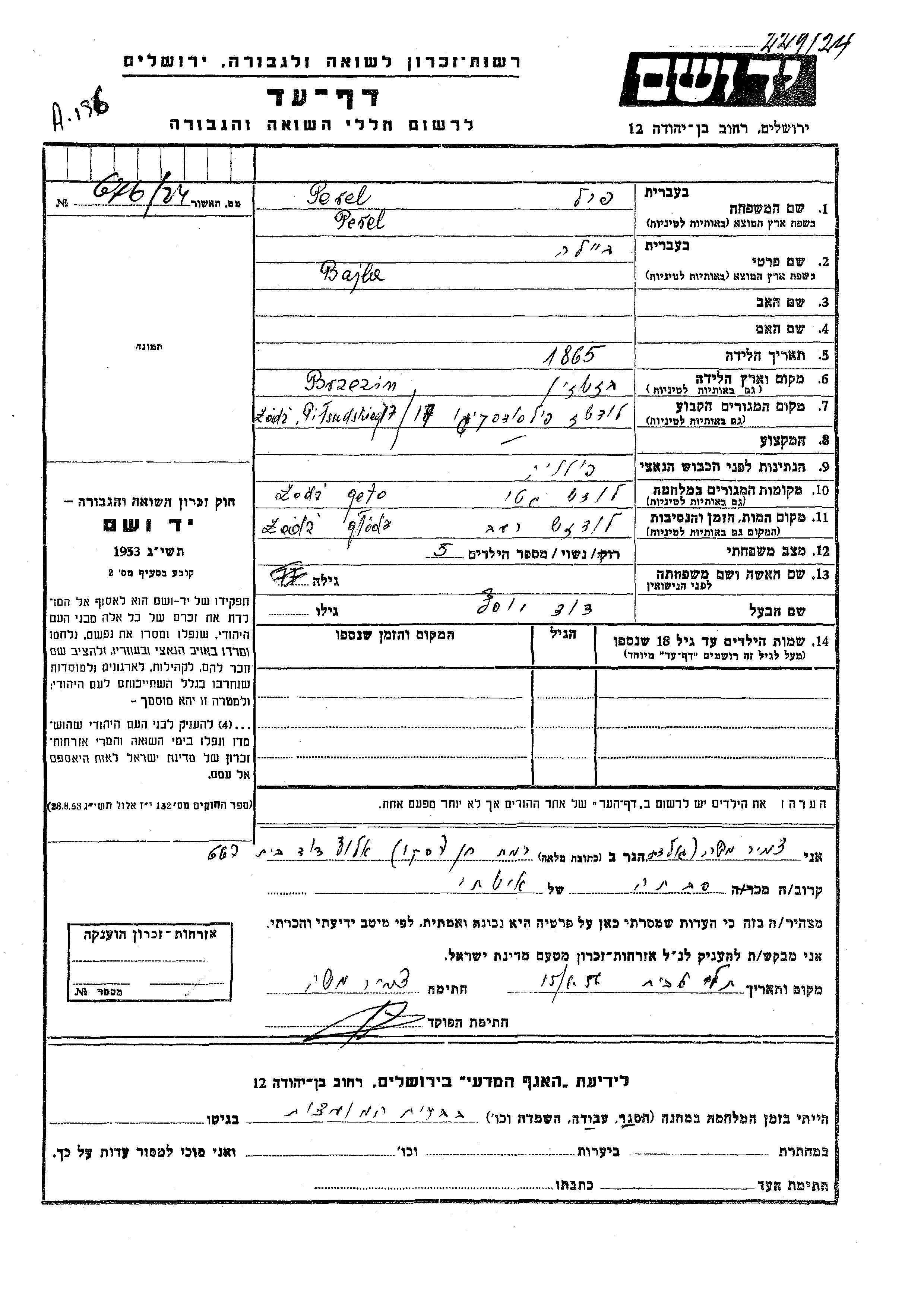 Bajla wurde in der Schoah ermordet. Todesort: Lodz, Polen.