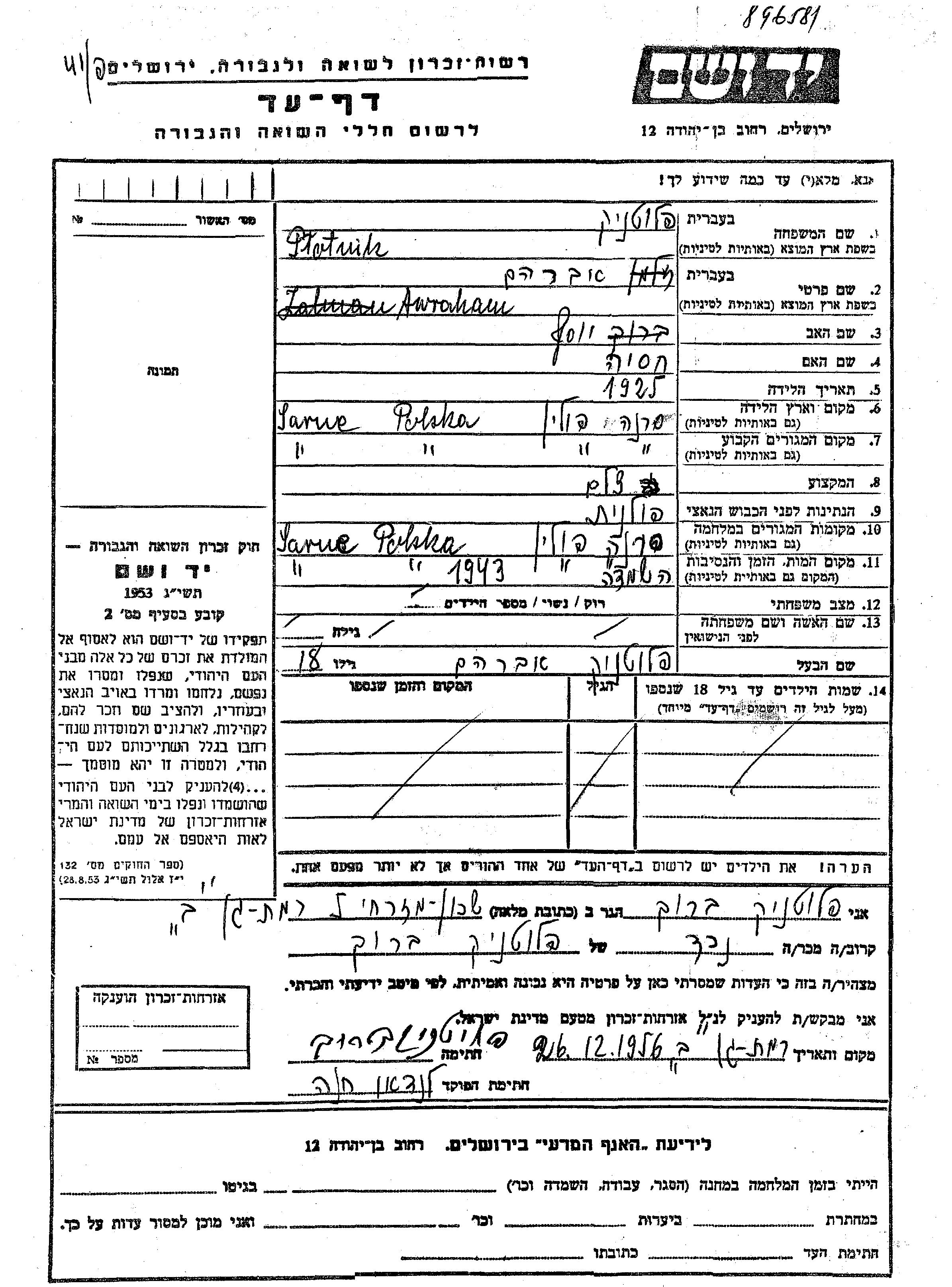 Awraham Plotnik wurde im Jahr 1925 in Sarny, Polen geboren. Er war der Sohn von Yosef und Khasia. Er war Fotograf/-in. Vor dem Zweiten Weltkrieg lebte er in Sarny, Polen. Während des Krieges war er in Sarny, Polen.