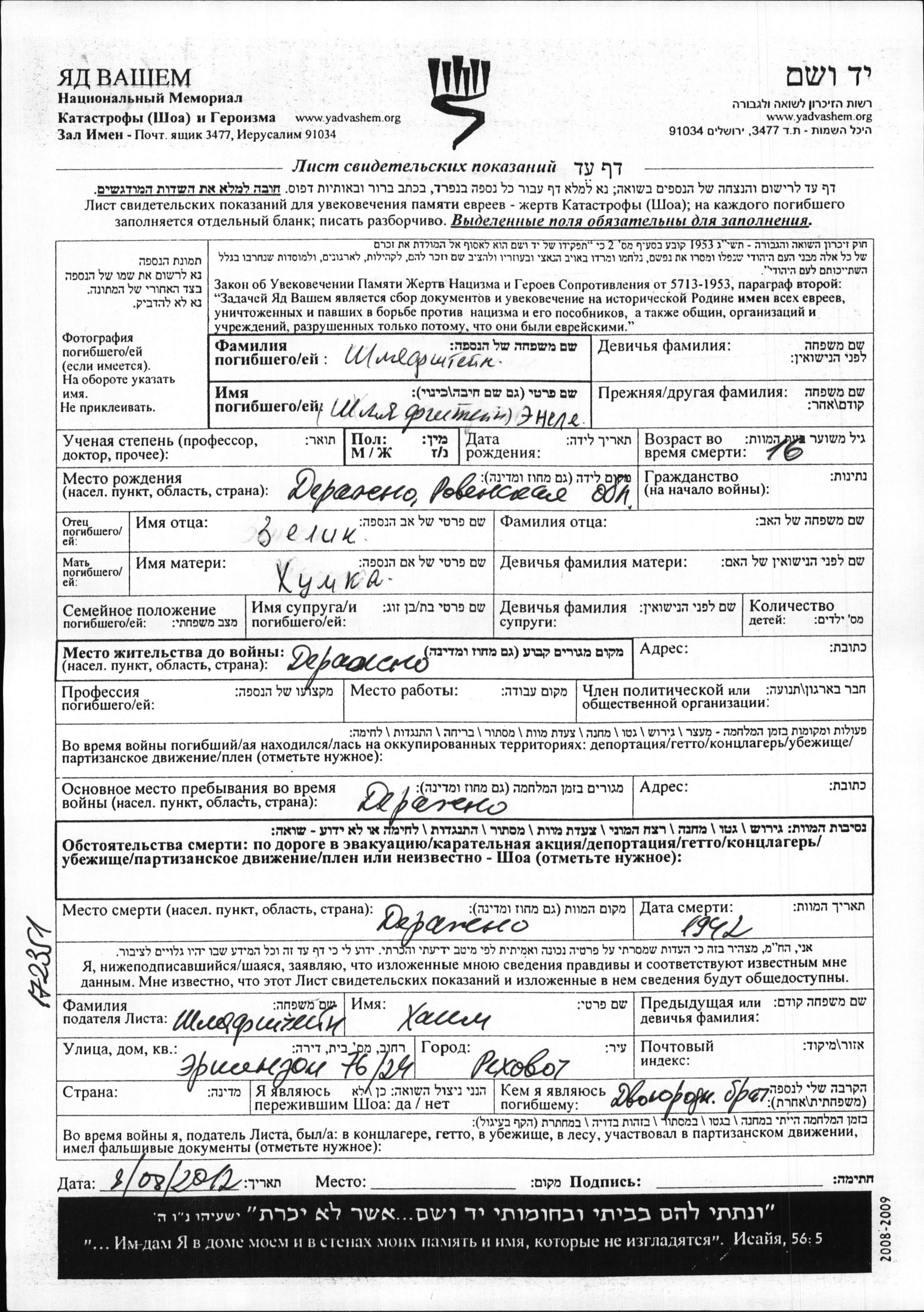 Shlyafshteyn Enele Derazhno, Polen Gedenkblatt
