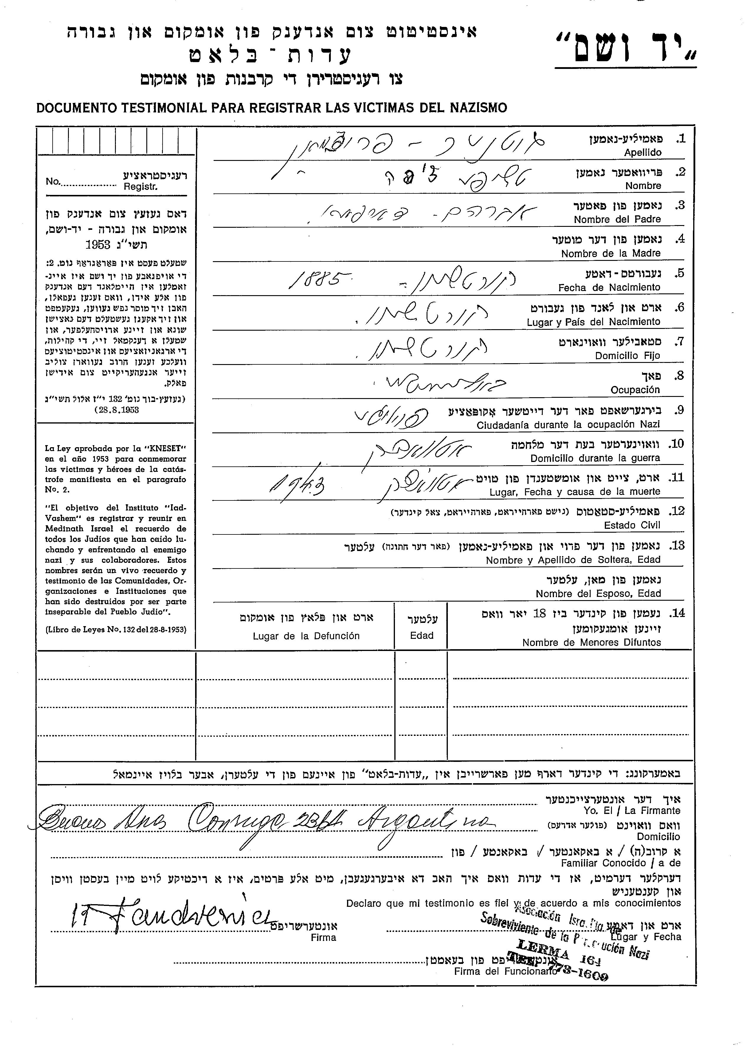 Suche nach einem Todesjahr im Zeitraum der Holocaust: 1933 bis 1945. Bitte wählen Sie 'Exakt' im Auswahlmenü, um nur nach einem einzelnen Jahr zu suchen, alternativ können Sie die flexibleren Optionen '+/- 2 Jahre' oder '+/- 5 Jahre' wählen.