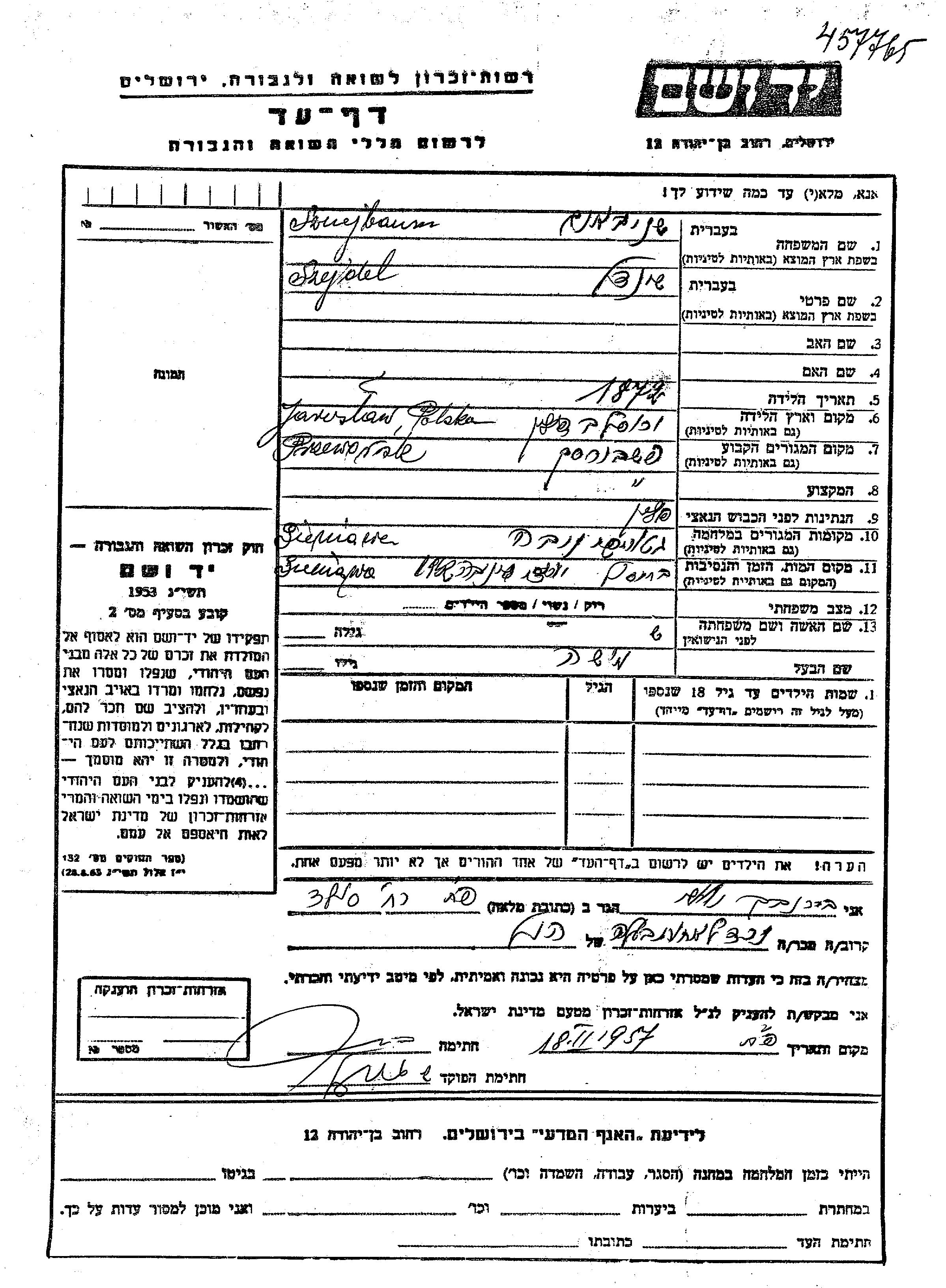 Szejdel wurde in der Schoah ermordet. Todesort: Sieniawa, Polen im Jahr 1942.