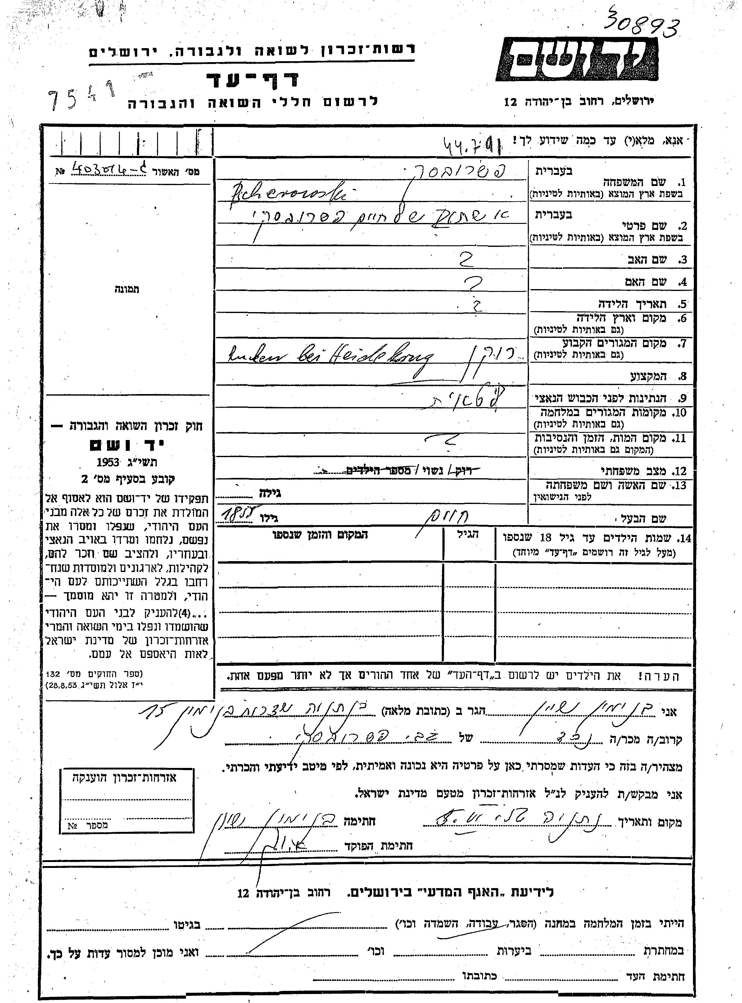 Vorname unbekannt Pcherowski wurde in Rukojnie, Polen geboren. Sie war mit Khaim Verheiratet.