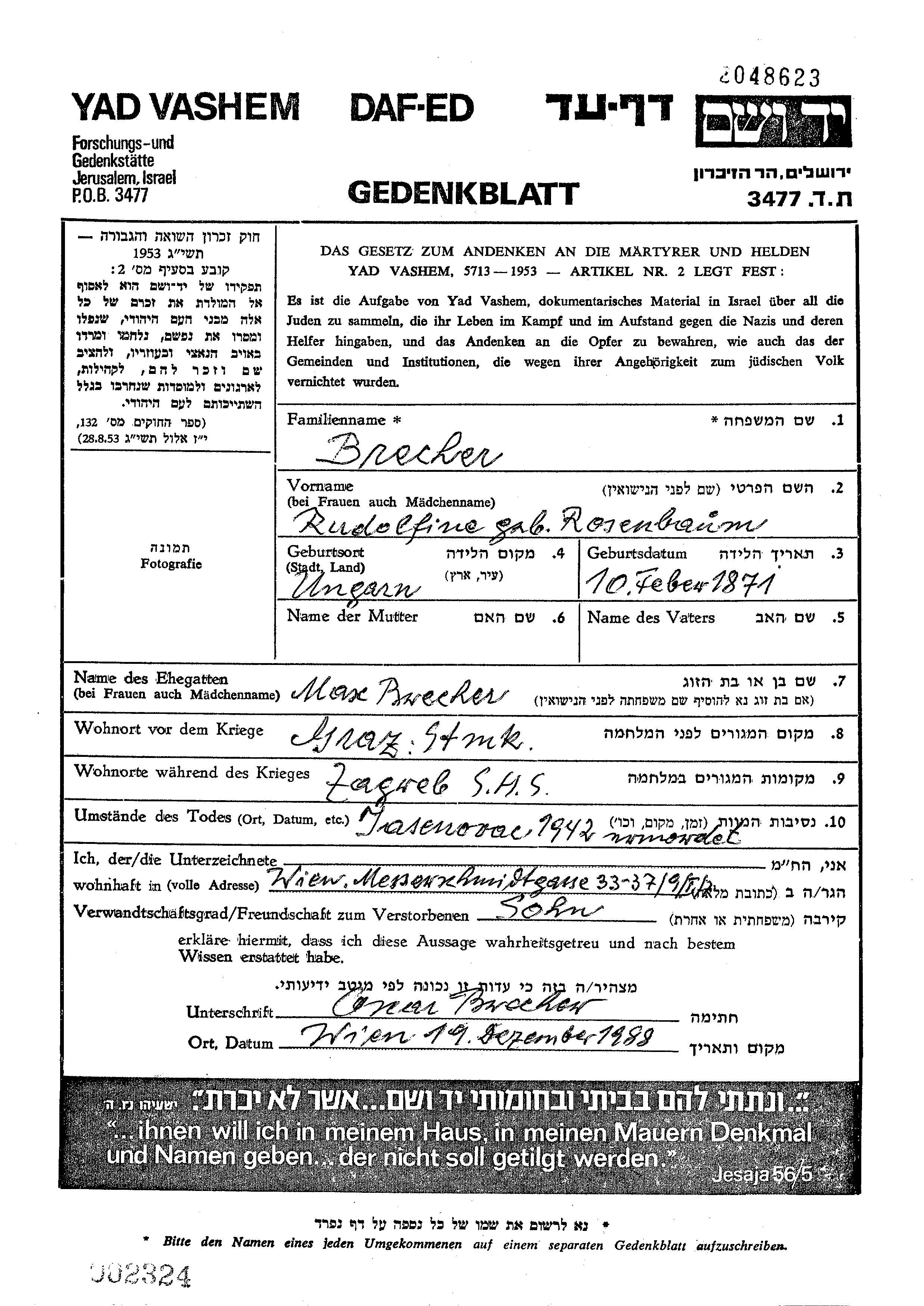 Brecher Rudolfine 1871 Liste von ermordeten oesterreichischen Juden