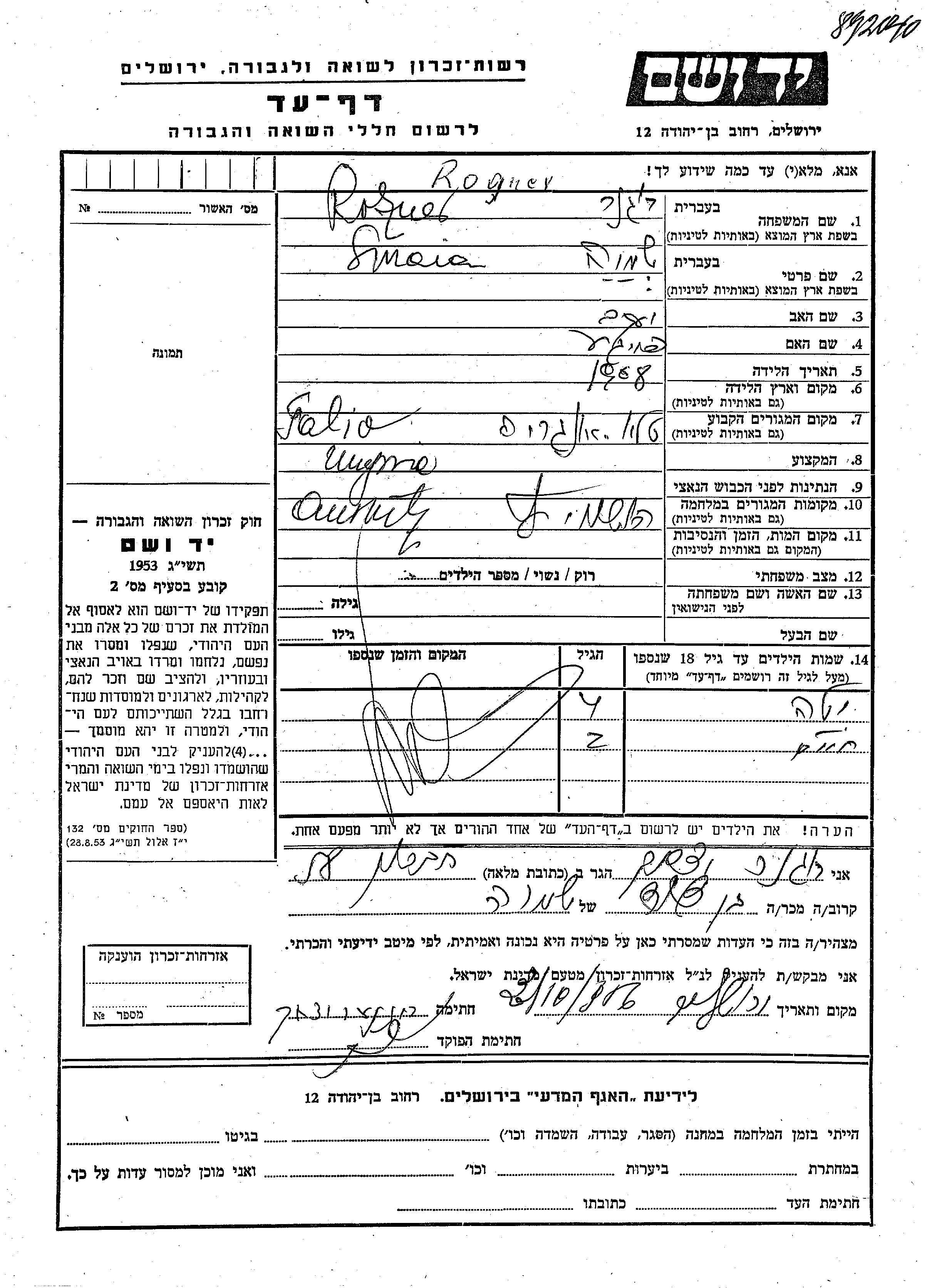 Shemaia Sandor Rogner wurde im Jahr 1908 in Tallya, Ungarn geboren. Er war Kaufmann/-frau. Vor dem Zweiten Weltkrieg lebte er in Tallya, Ungarn.