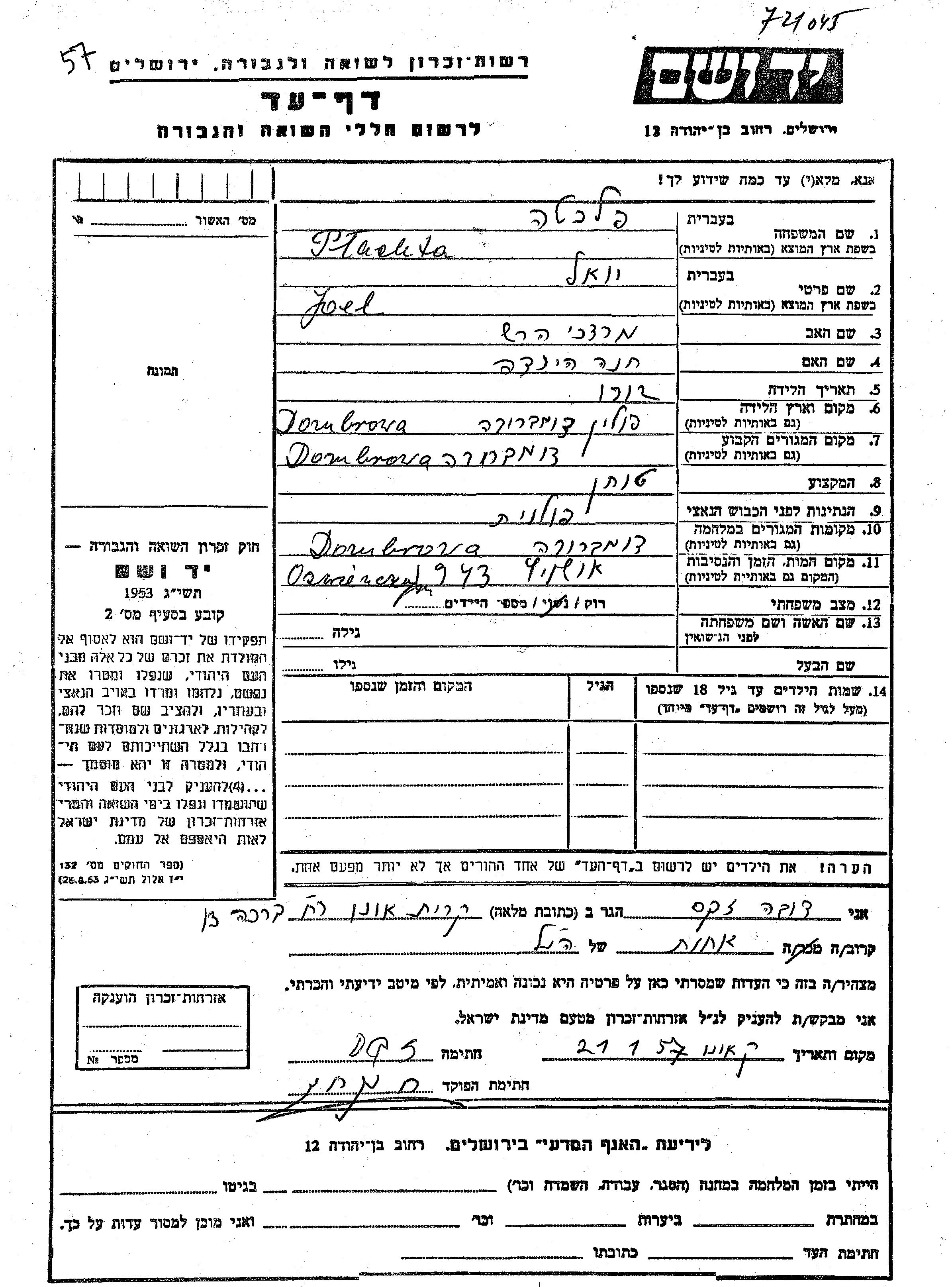 Joel wurde in der Schoah ermordet. Todesort: Auschwitz, Polen im Jahr 1943.