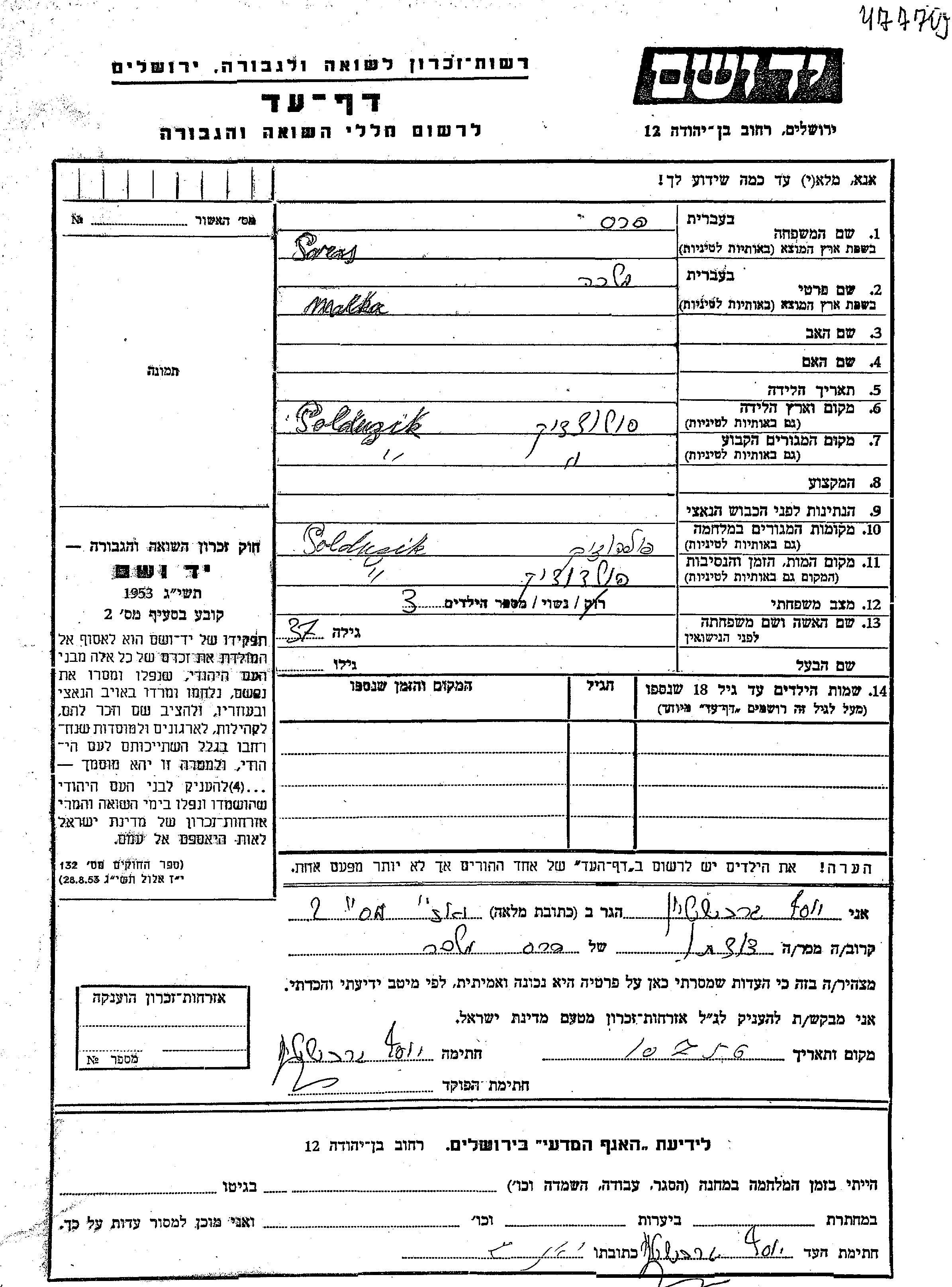 Malka wurde in der Schoah ermordet. Todesort: Polduzik, Polen.