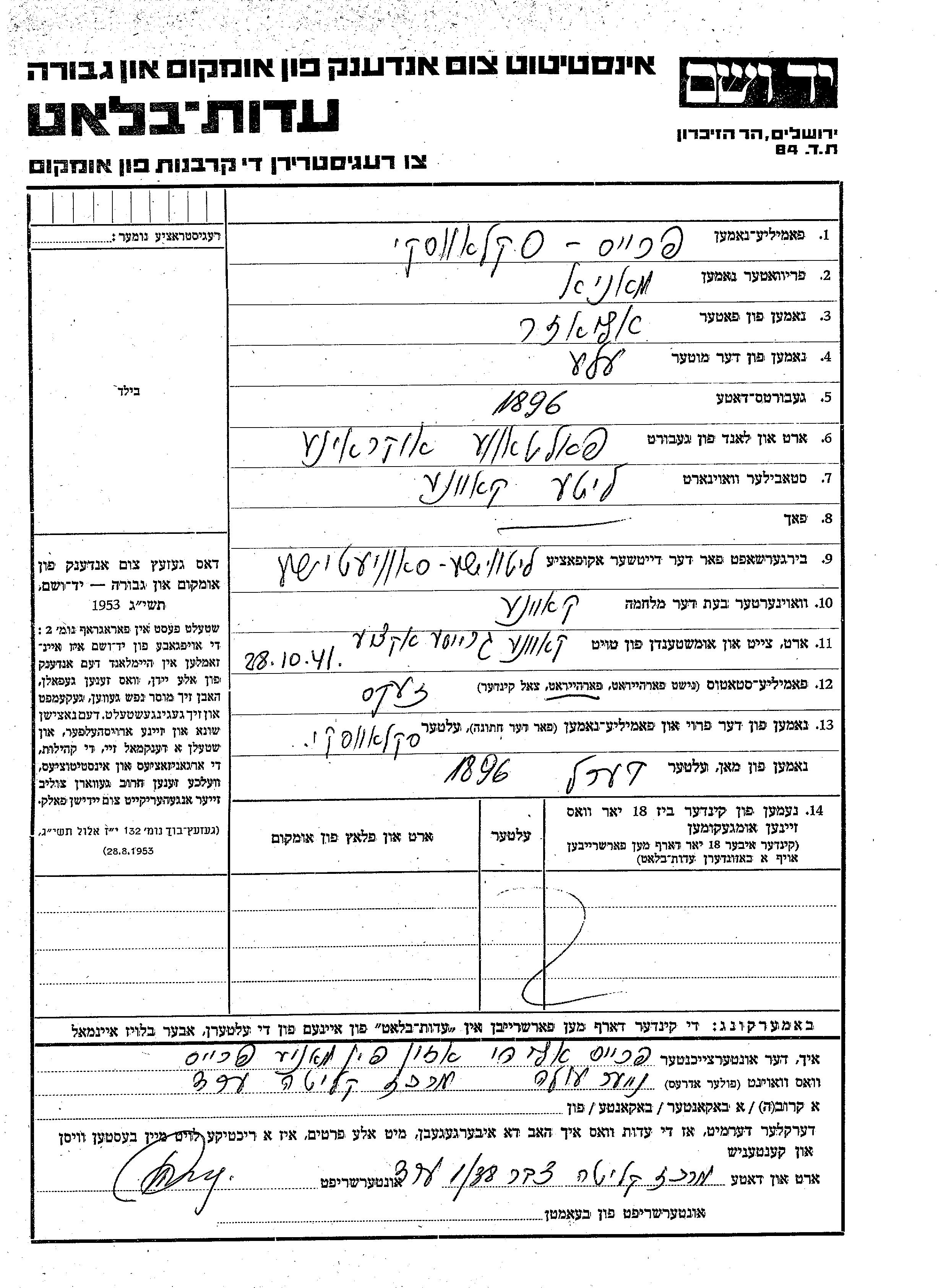 Yad Vashem - Gedenkblätter Sammlung