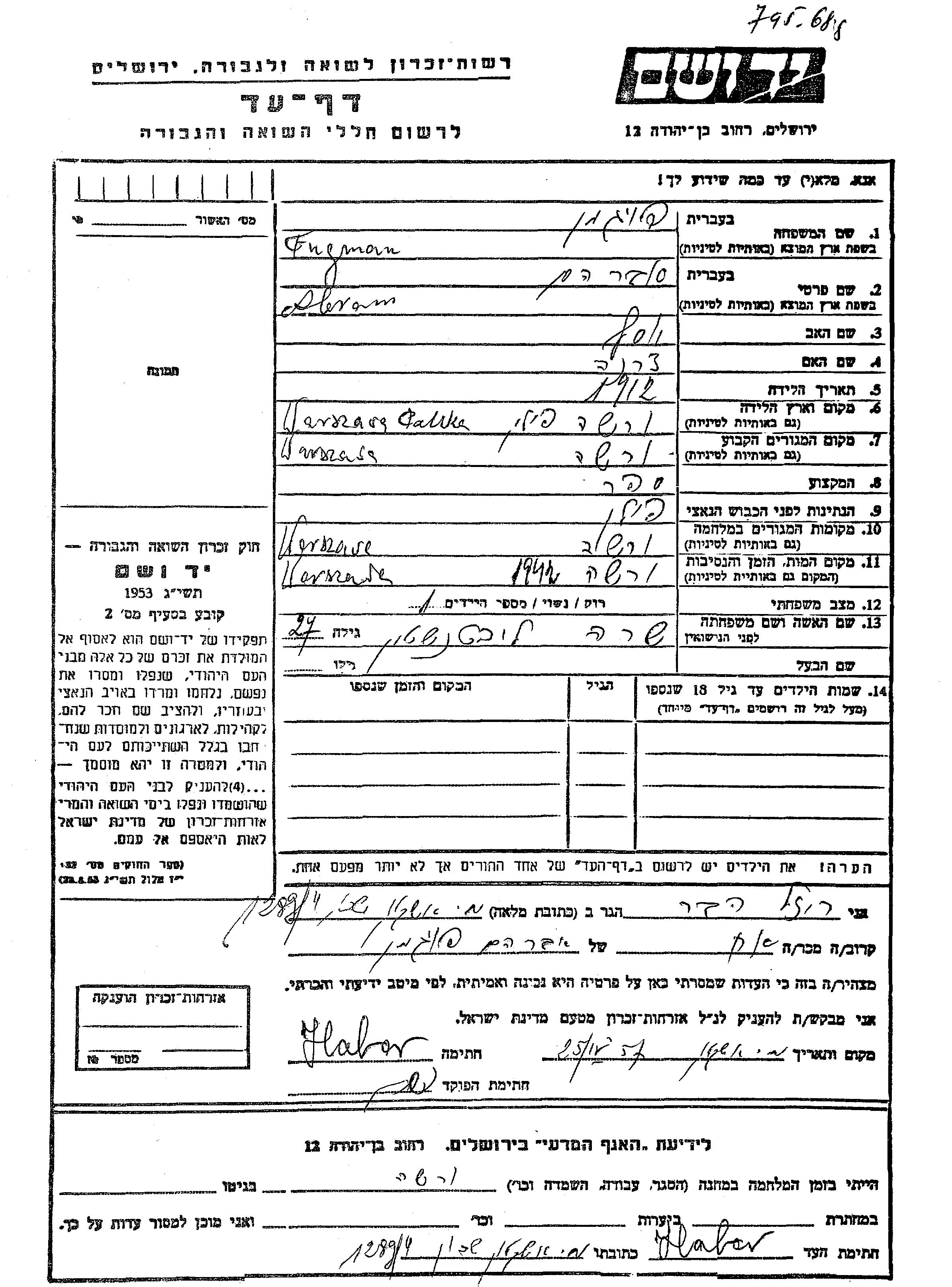 Abram wurde in der Schoah ermordet. Todesort: Warsaw, Polen im Jahr 1942.