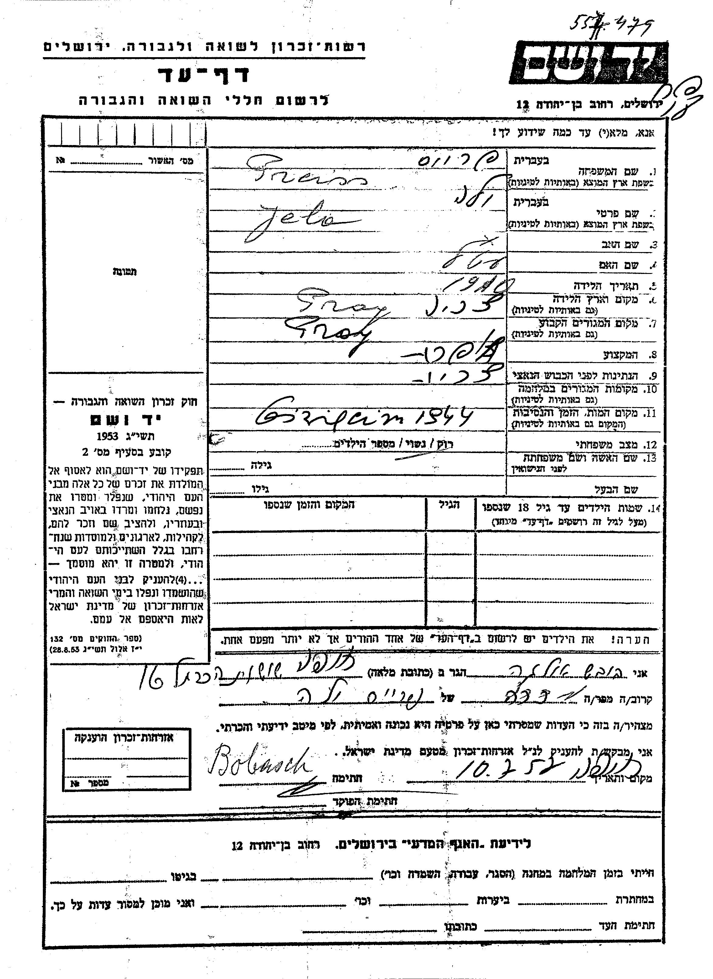 Yela wurde in der Schoah ermordet. Todesort: Auschwitz, Polen im Jahr 1944.