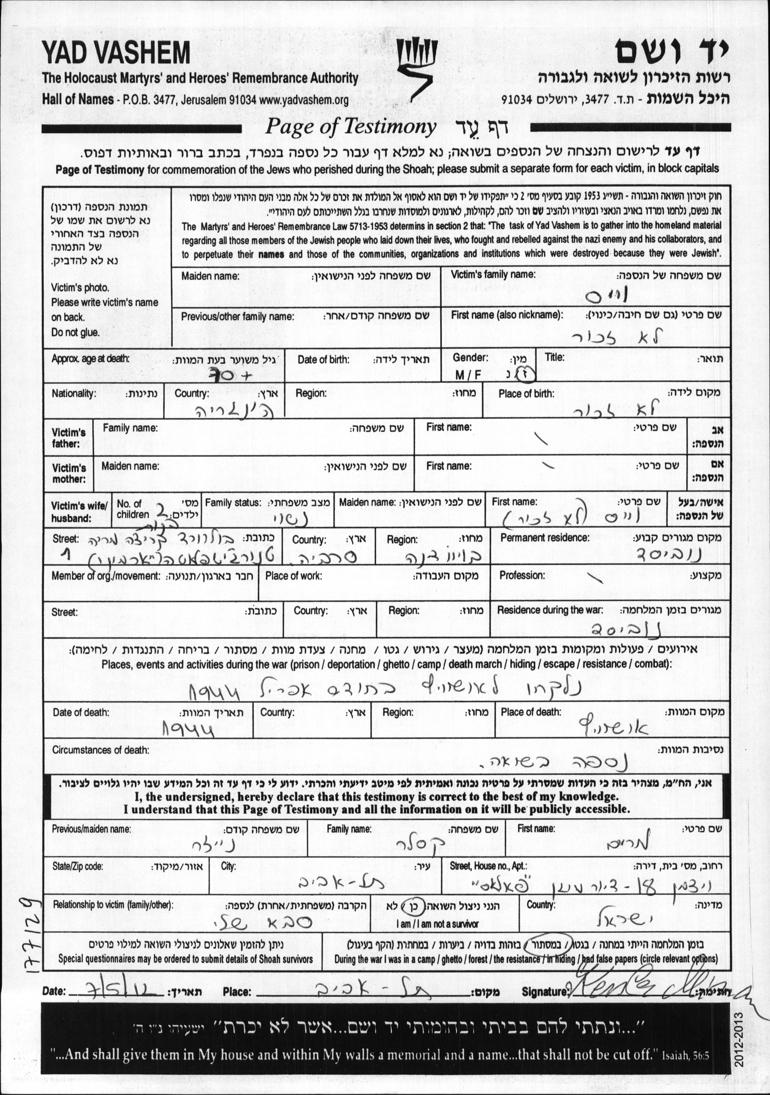 Er wurde in der Schoah ermordet. Todesort: Auschwitz, Polen im Jahr 1944.