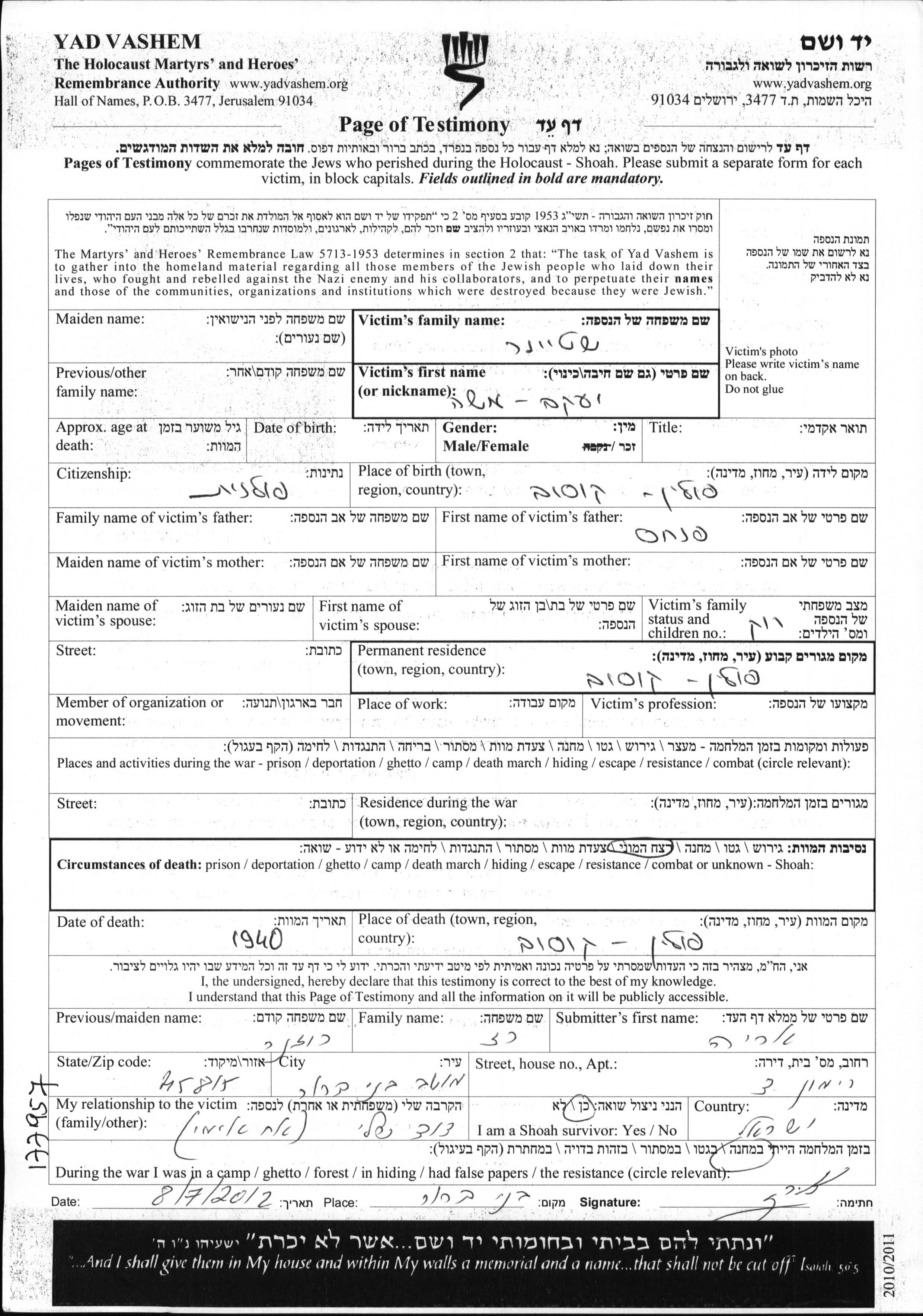 Yaakov Moshe wurde in der Schoah ermordet. Todesort: Kosow, Polen im Jahr 1940.