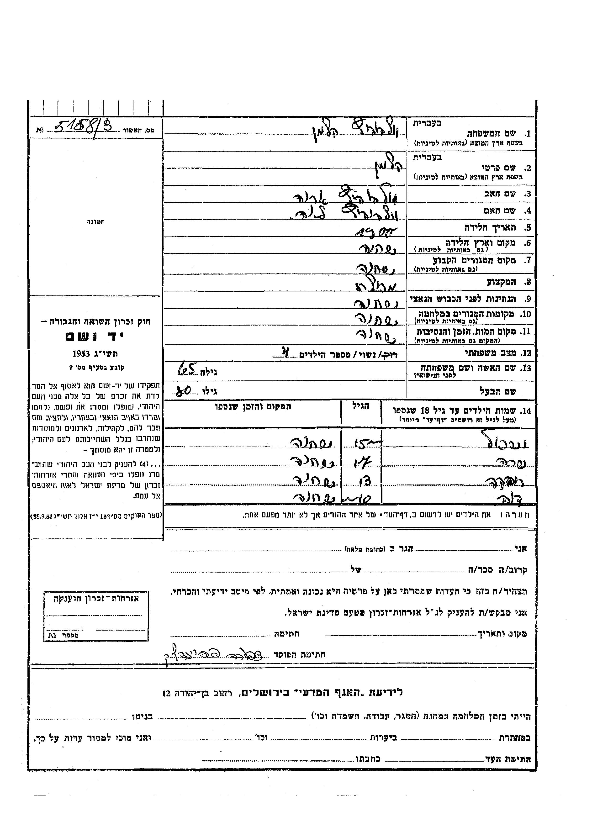 Yad Vashem - Gedenkblätter Sammlung
