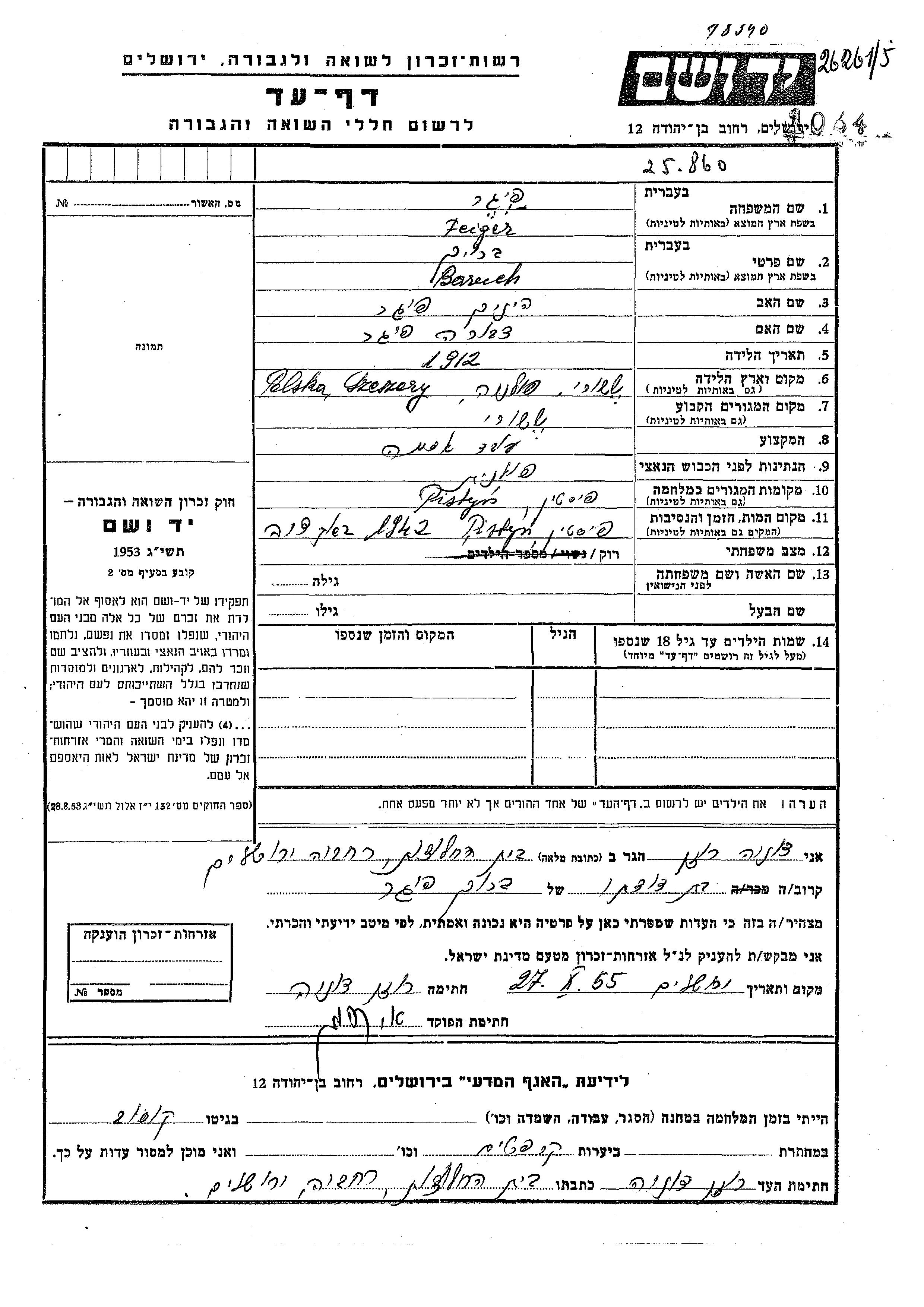 Baruch wurde in der Schoah ermordet. Todesort: Pistyń, Polen im Jahr 1942.