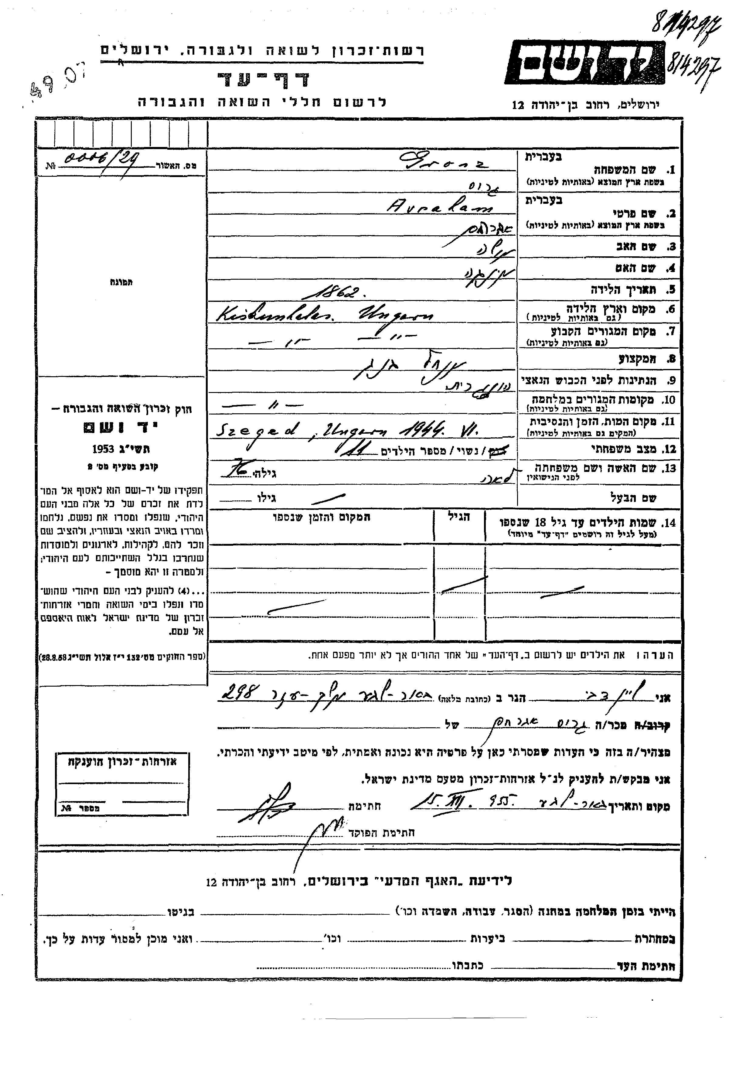 Avraham wurde in der Schoah ermordet. Todesort: Szeged, Ungarn im Jahr 06/1944.