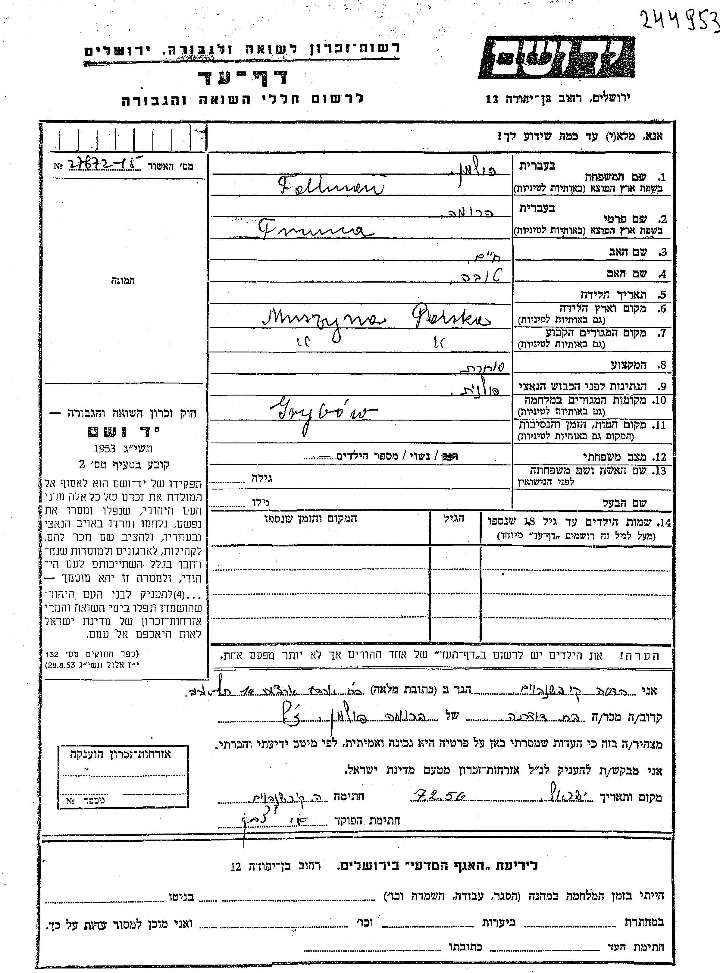 Fruma wurde in der Schoah ermordet.
