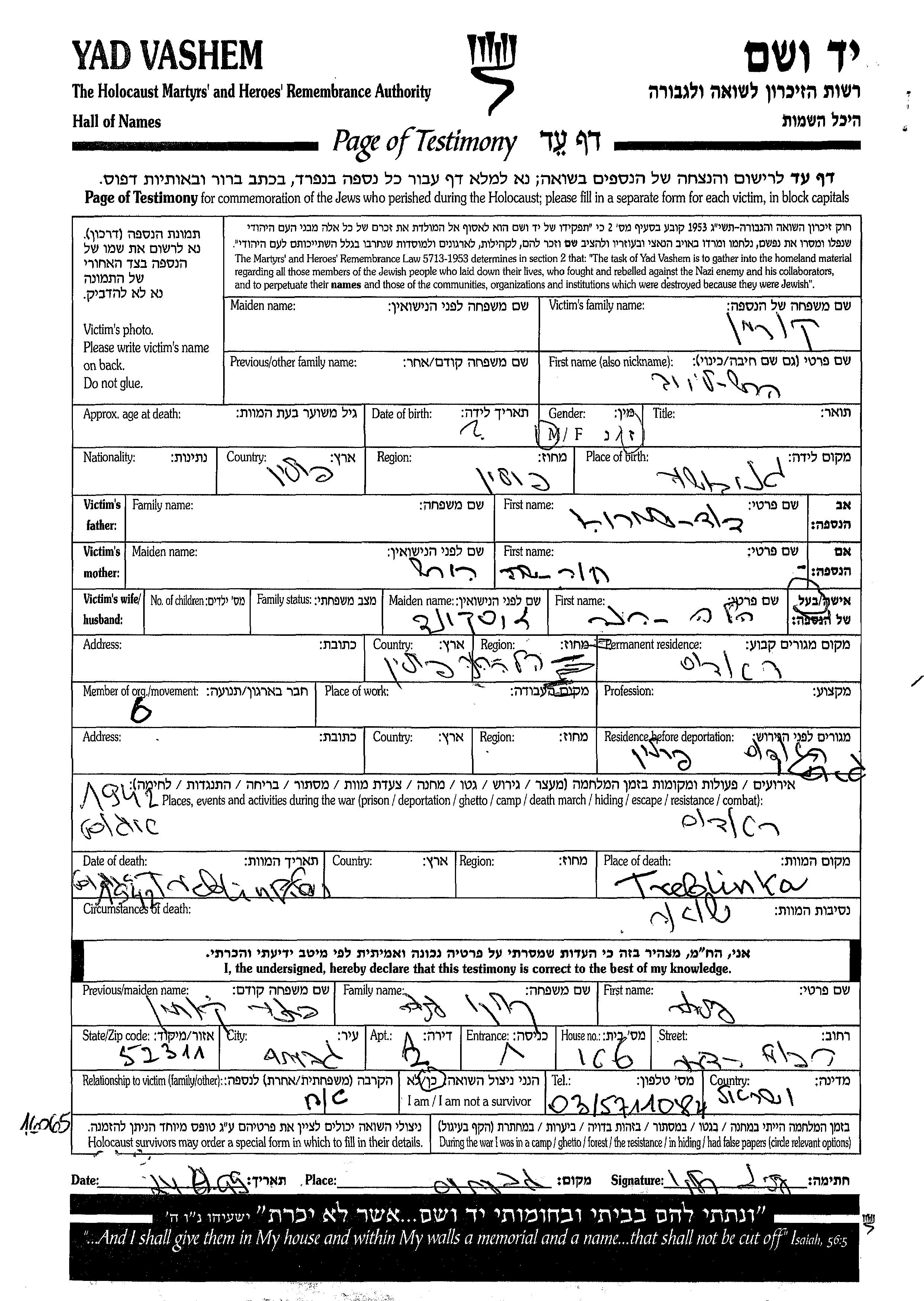 Hersh Leib wurde in der Schoah ermordet. Todesort: Treblinka, Polen im Jahr 08/1942.