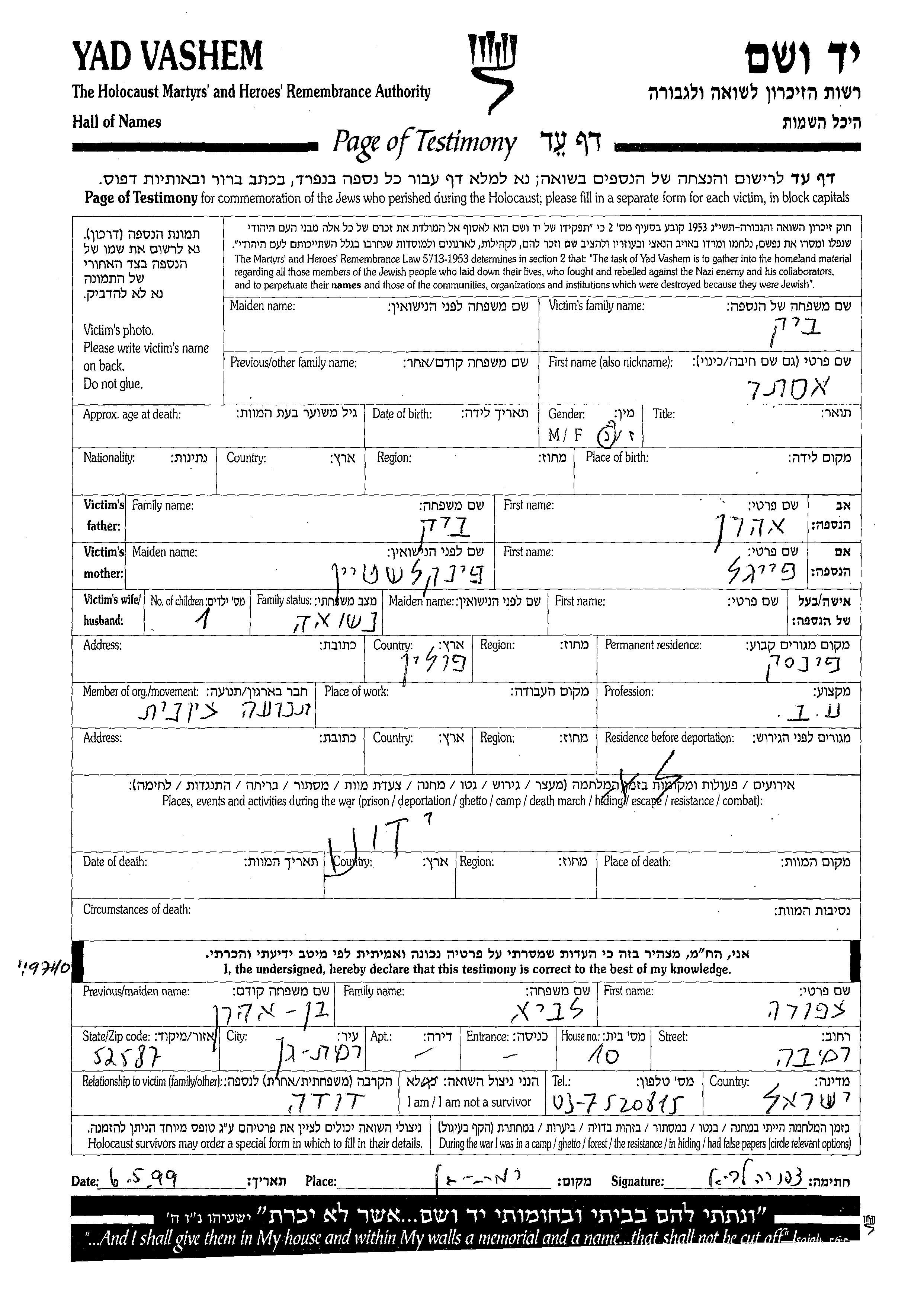 Ester Bik wurde Sie war die Tochter von Aharon und Feigel. Sie war Hausfrau und Verheiratet. Vor dem Zweiten Weltkrieg lebte sie in Pinsk, Polen.