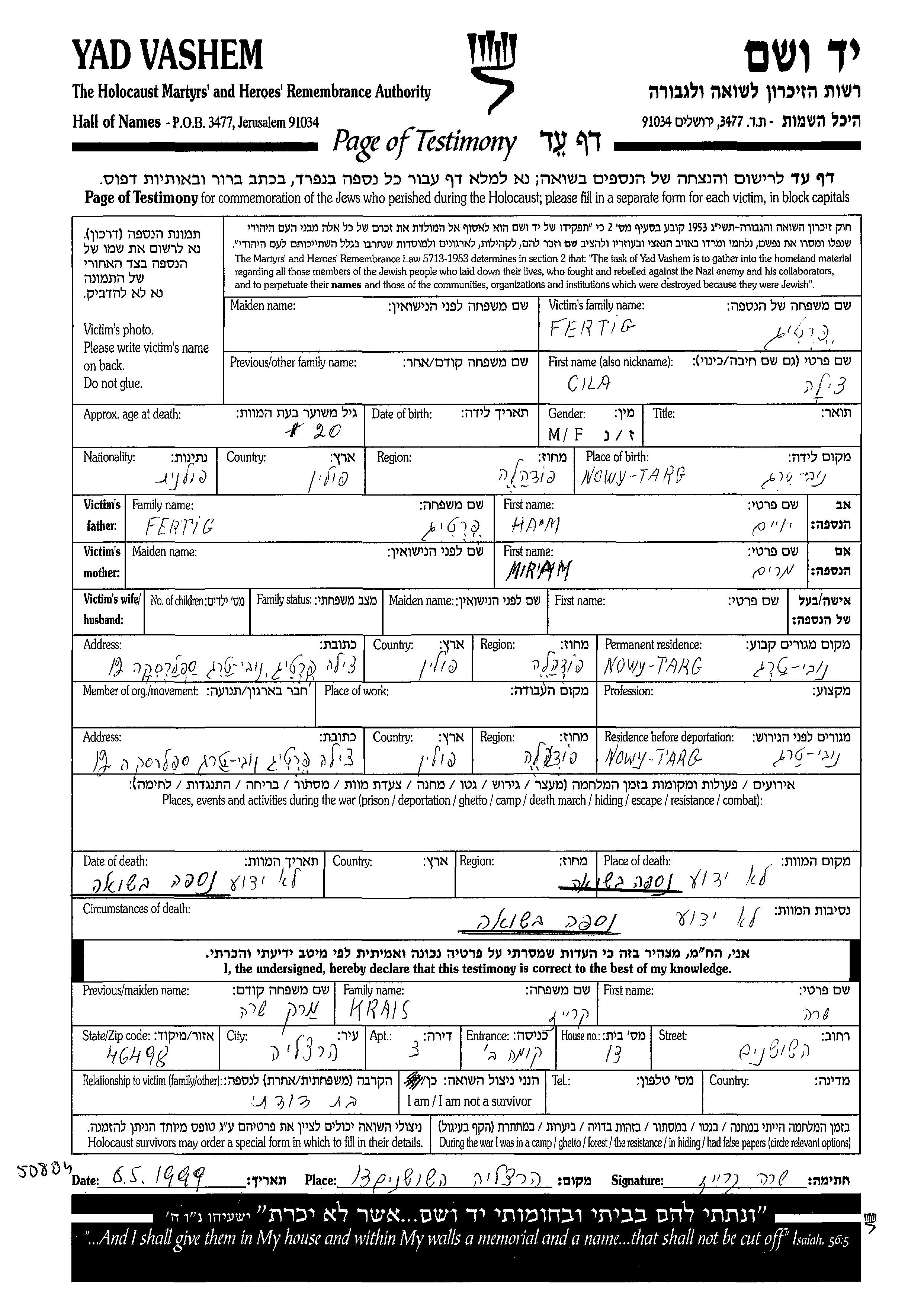 Cila wurde in der Schoah ermordet.
