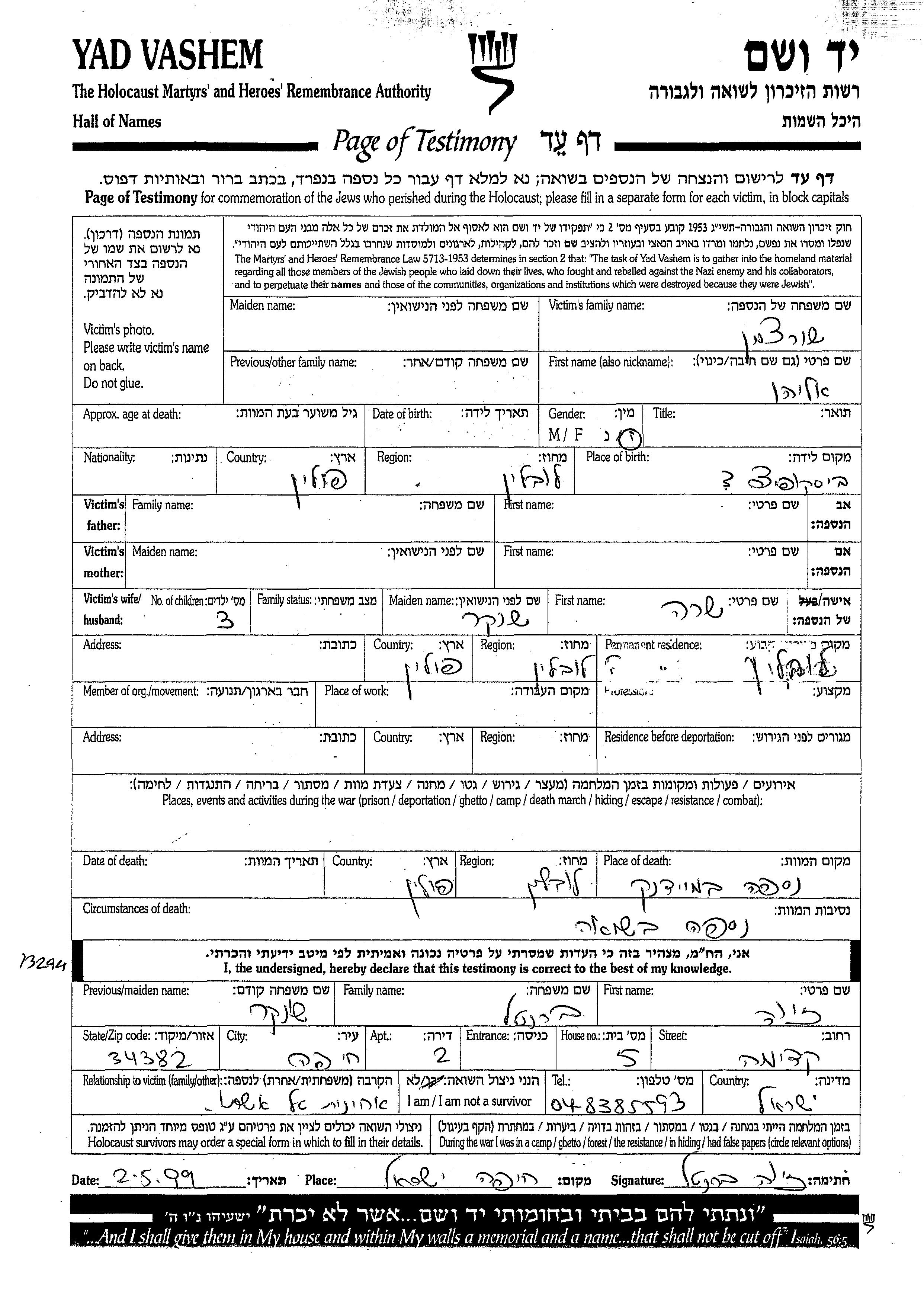 Eliahu Shvartzman wurde in Biskupice, Polen geboren. Er war mit Sara, geb. Shenker Verheiratet. Vor dem Zweiten Weltkrieg lebte er in Lublin, Polen.
