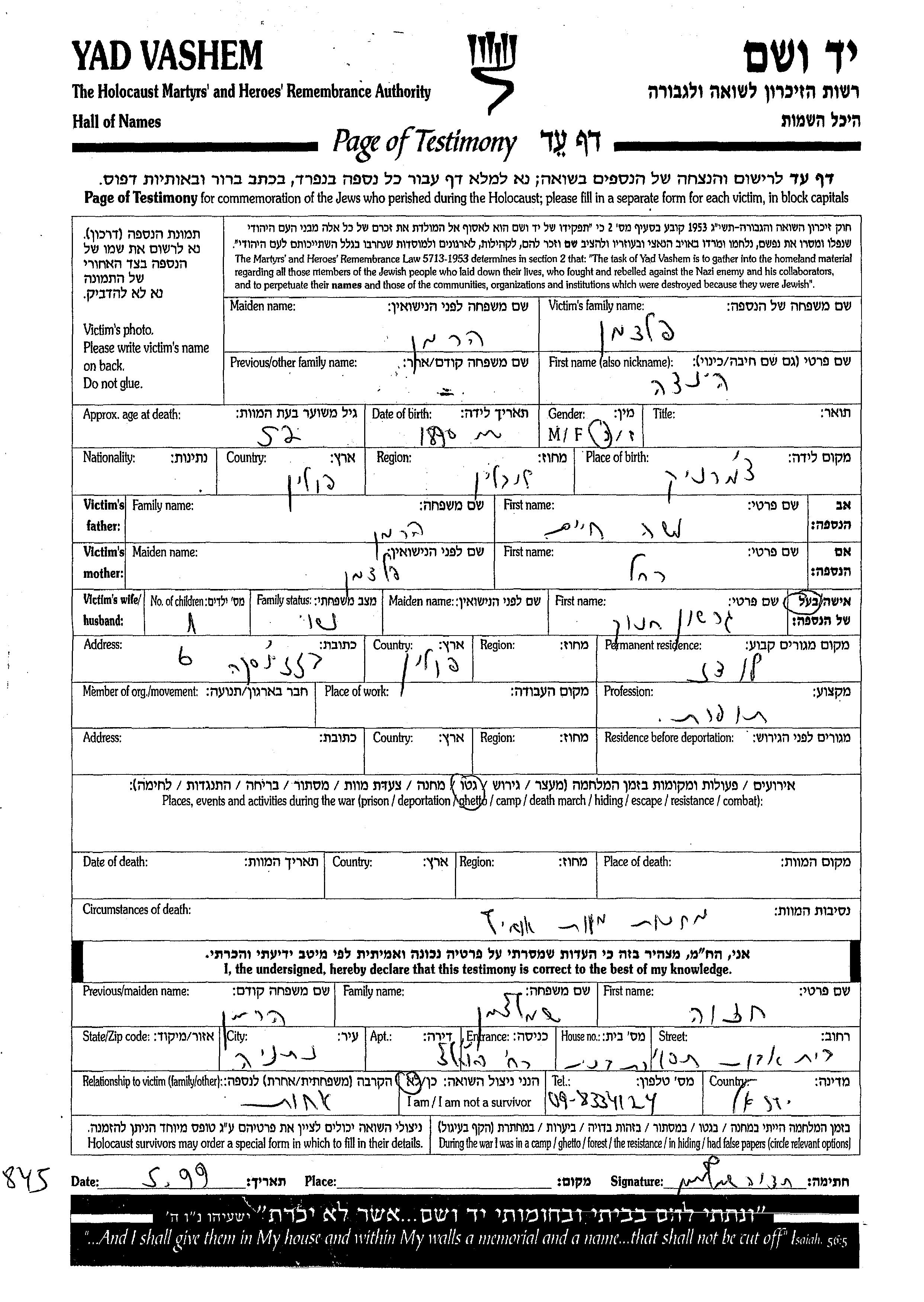 Hinda wurde in der Schoah ermordet. Todesort: Auschwitz, Polen.