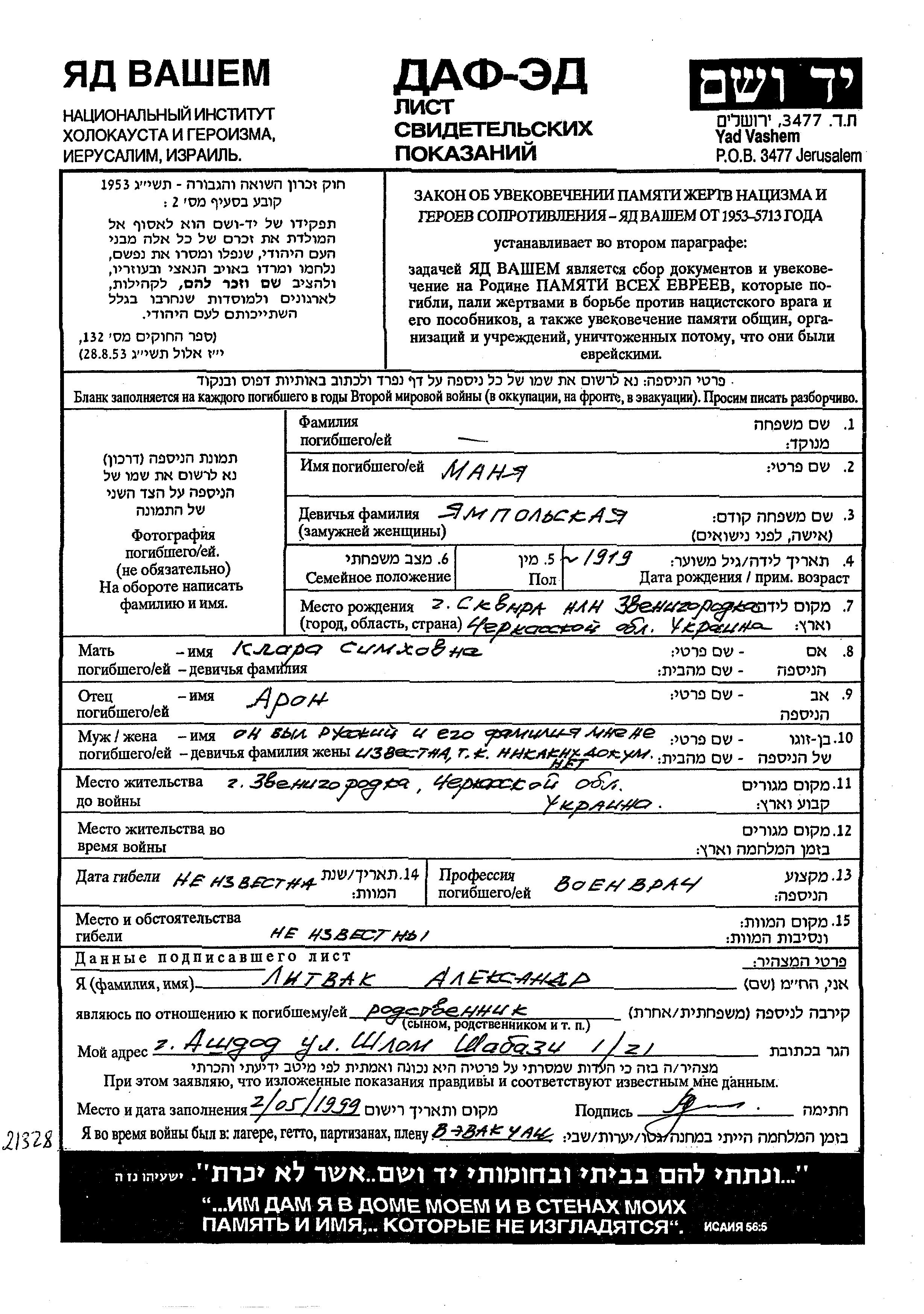 Juden wurden in der Schoah auf verschiedenste Weisen ermordet, unter anderem: Vergasen, Erschiessen, lebendig verbrannt werden, lebendig begraben werden, Tod durch Erschöpfung durch Zwangsarbeit, Epidemien, mangels jeder hygienischer Bedingung oder dem Fehlen medizinischer Versorgung. Manche Juden nahmen sich das Leben, um der Festnahme und weiterer Verfolgung zu entgehen oder ihr hoffnungsloses, nicht nachlassendes Leiden zu beenden.