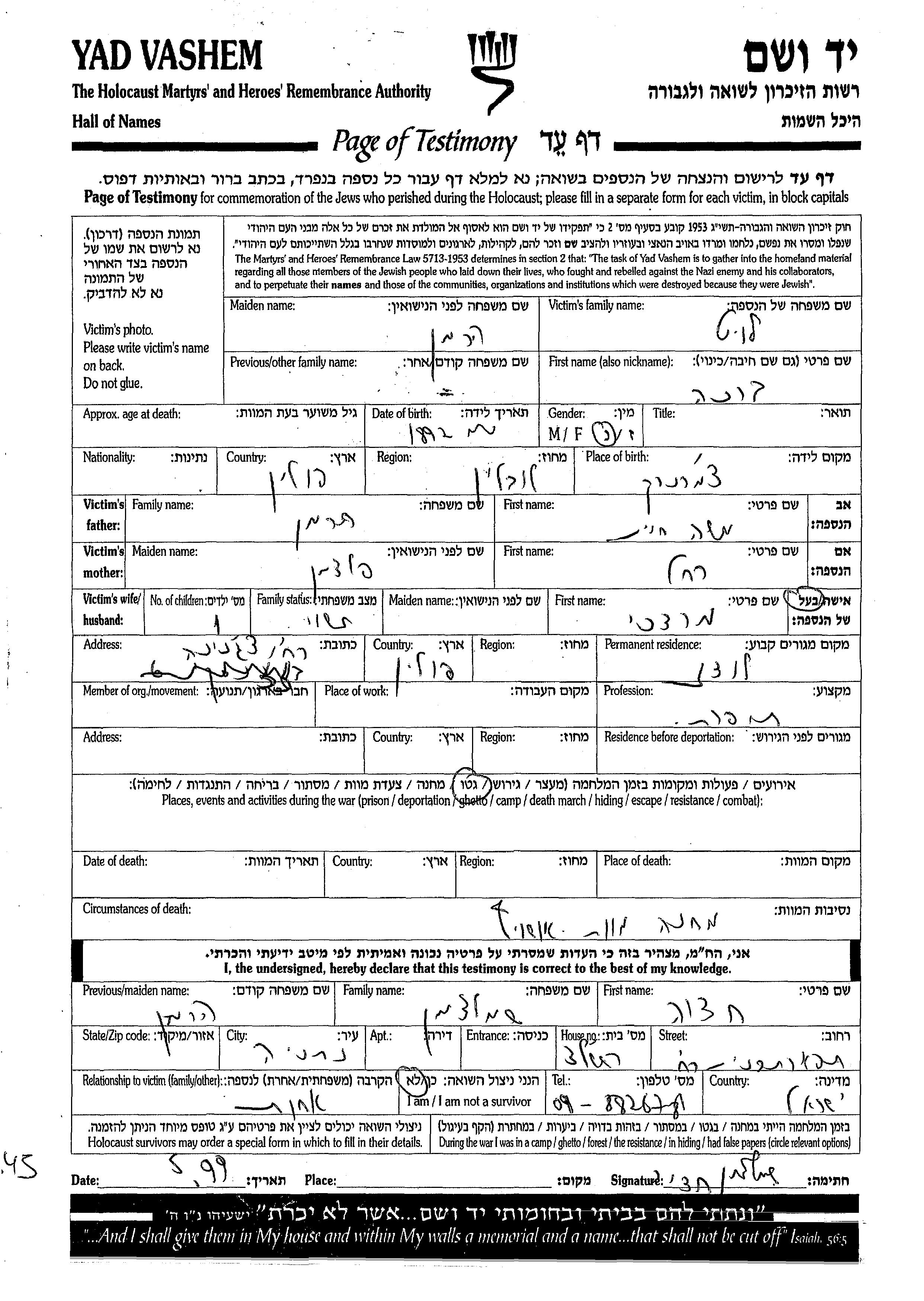 Buna Levit, geb. Herman wurde im Jahr 1892 in Czemierniki, Polen geboren. Sie war die Tochter von Moshe Khaim und Rakhel. Sie war Schneiderin und mit Mordekhai Verheiratet. Vor dem Zweiten Weltkrieg lebte sie in Lodz, Polen.