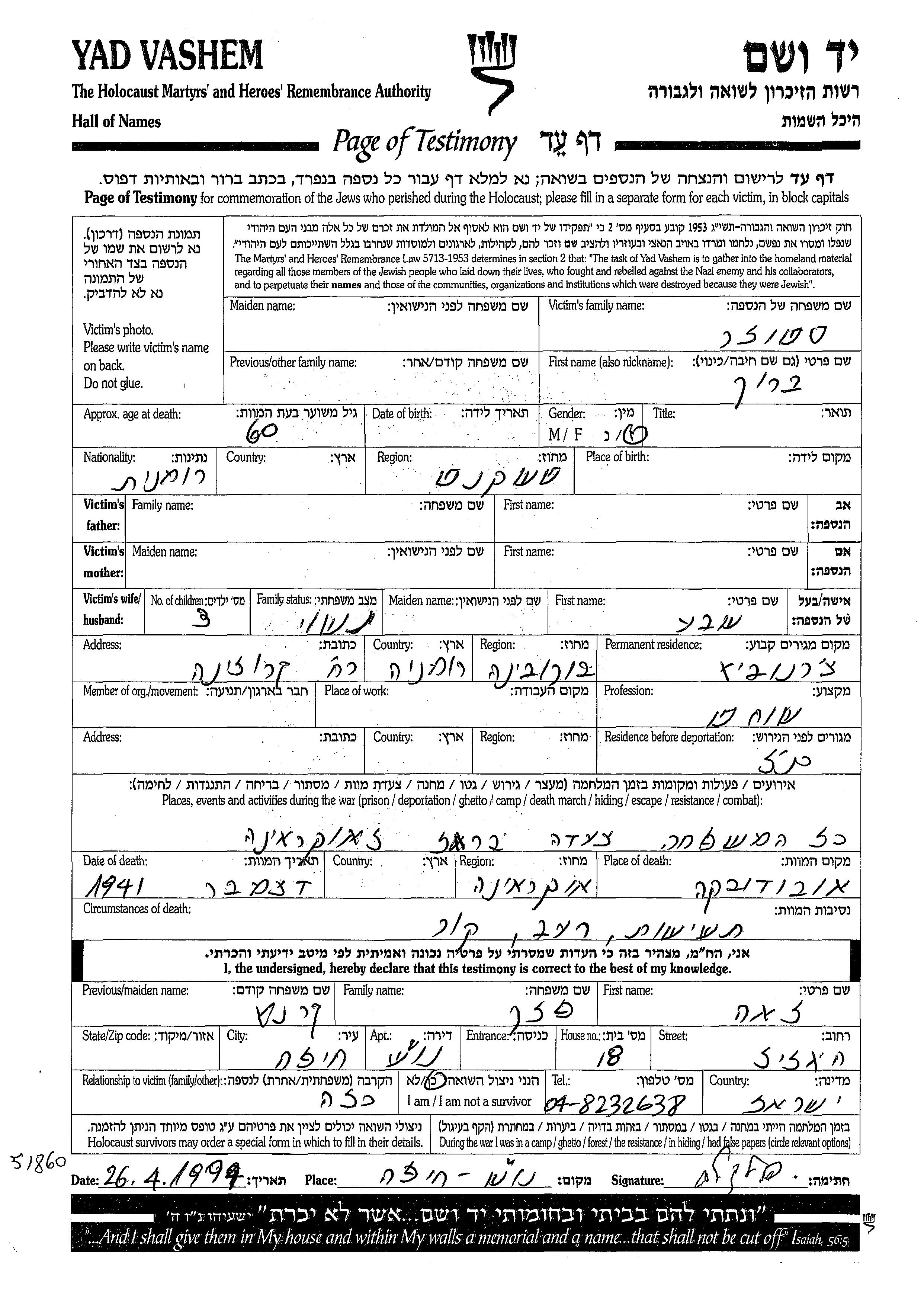 Barukh wurde in der Schoah ermordet. Todesort: Obodovka, Ukraine (UdSSR) im Jahr 12/1941.
