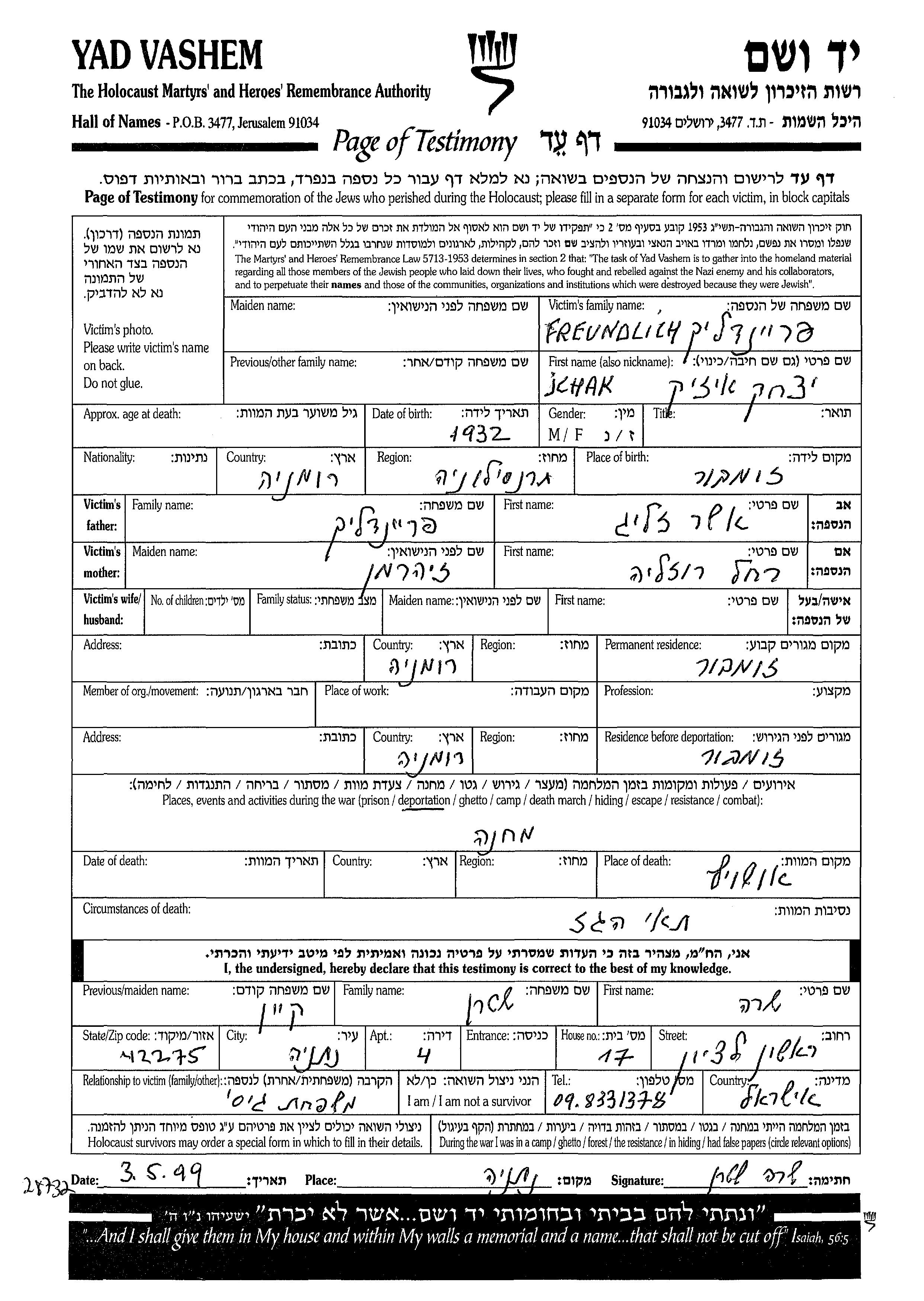 Juden wurden in der Schoah auf verschiedenste Weisen ermordet, unter anderem: Vergasen, Erschiessen, lebendig verbrannt werden, lebendig begraben werden, Tod durch Erschöpfung durch Zwangsarbeit, Epidemien, mangels jeder hygienischer Bedingung oder dem Fehlen medizinischer Versorgung. Manche Juden nahmen sich das Leben, um der Festnahme und weiterer Verfolgung zu entgehen oder ihr hoffnungsloses, nicht nachlassendes Leiden zu beenden.