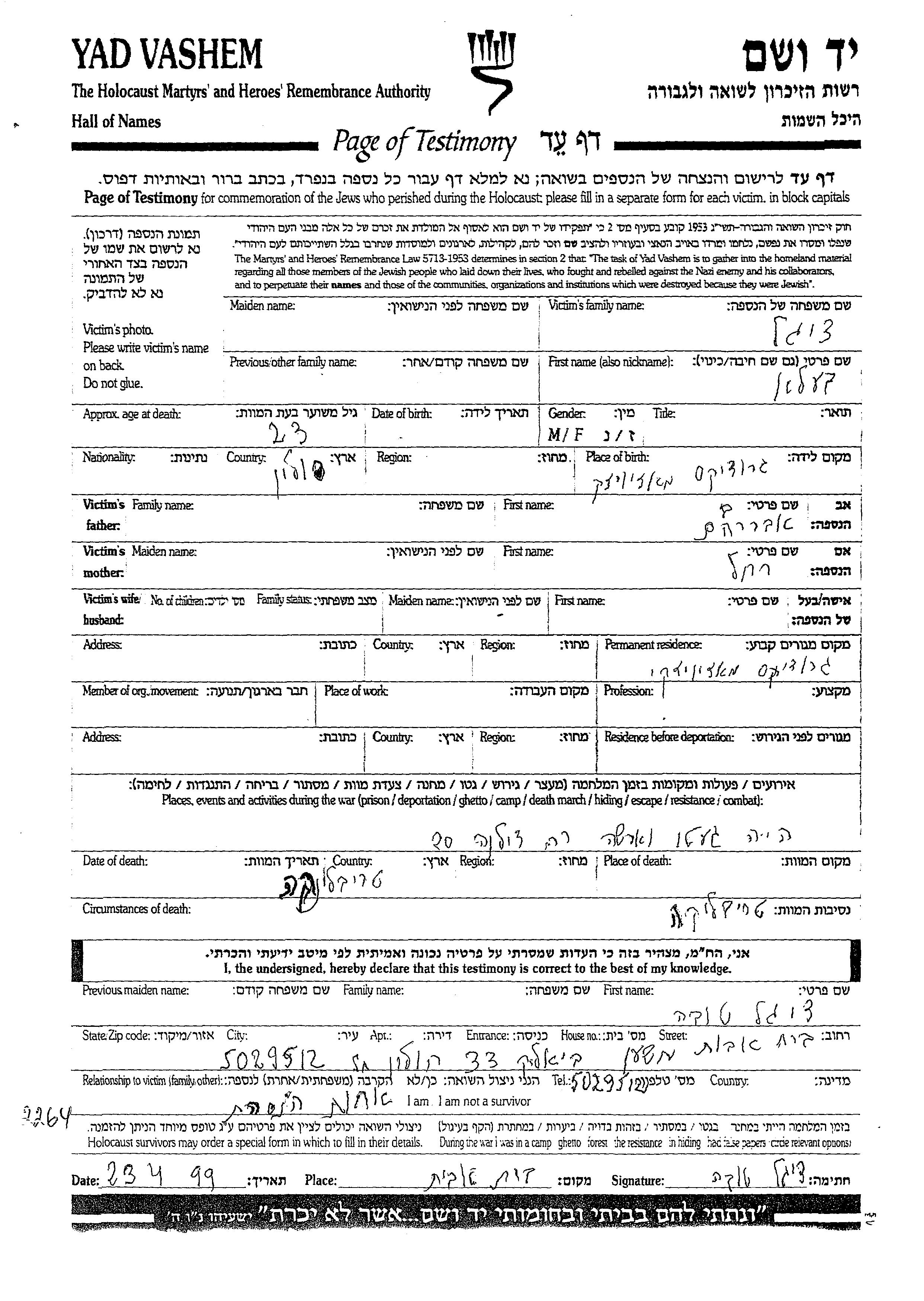 Bela wurde in der Schoah ermordet. Todesort: Treblinka, Polen.